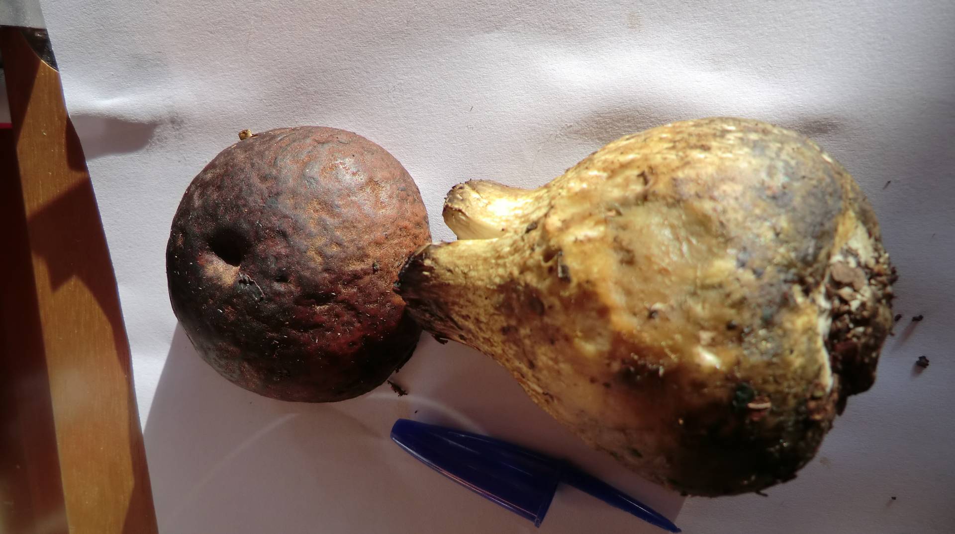 No es un B.Pinnicola. El Pinnicola no ennegrece ni tiene esa cuticula, ni tiene el apice rojo,no tiene el pie amarillo y es liso . Saludos.