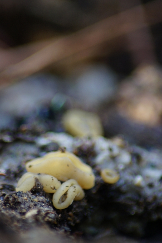 La segunda tiene tela amigo Juan Carlos, es un Ascomycete de los de meter al micro y a ver que pasa, se me ocurre la Fensjonia luteoalba como algo parecido, pero precisa micro, la primera o es como dice Juande un plasmodio, el nacimiento de una Mucilago crustacea por ejemplo, o es la Sebacina incrustans