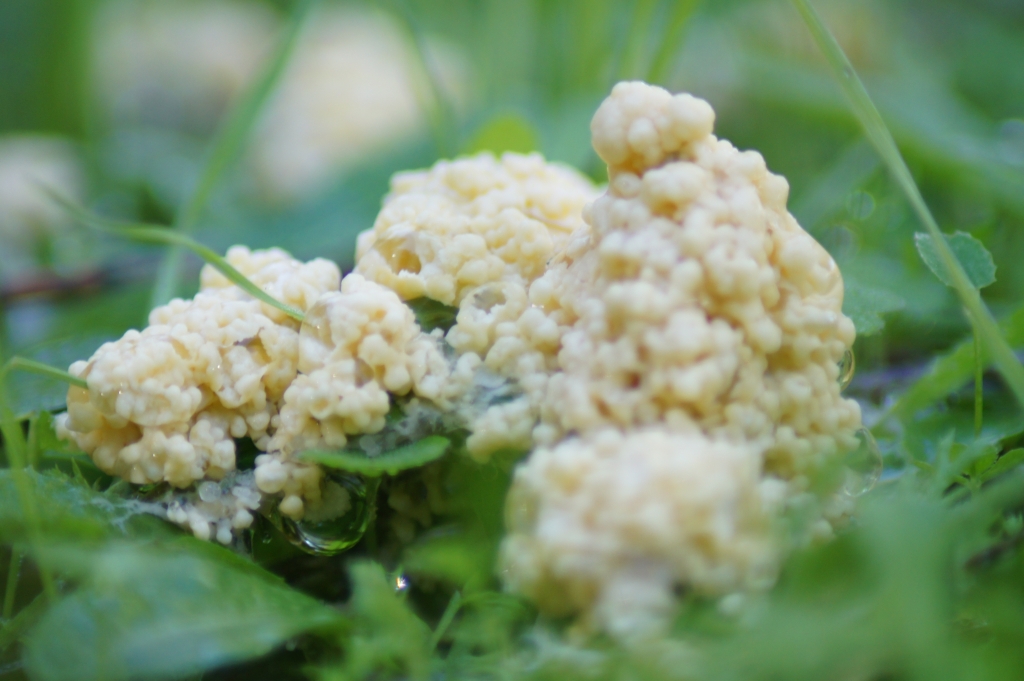 la primera es un mixomiceto....antes estaban incluidos en el reino de los hongos....llamados falsos hongos u hongos moviles....por que tienen la peculariadad de desplazarse..los mixos son complicados y el echo de que no hay mucha bibliografia no ayuda...yo consegui un trabajo del CSIC y la tesis de cabo rey que me aportan algo pero siempre en dibujo nunca en guia fotografica...esa de la foto me parece un Mucilago crustacea....
