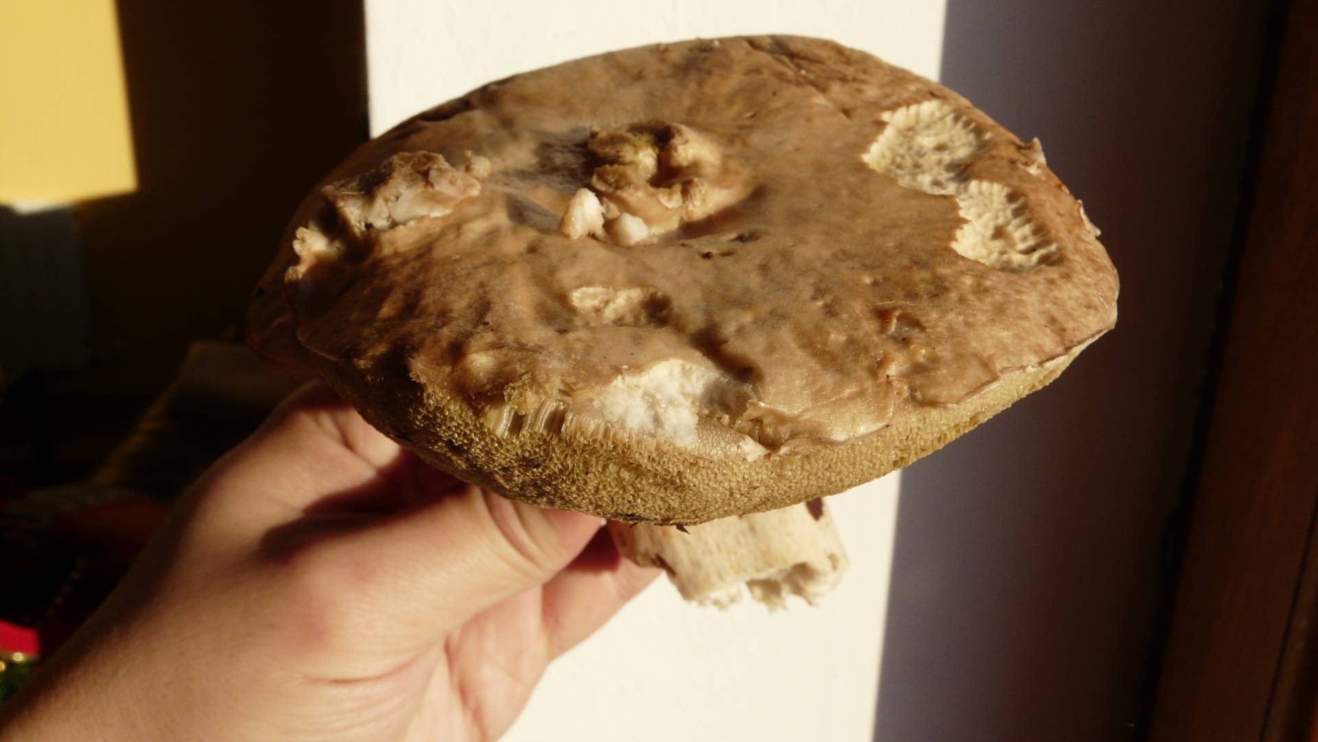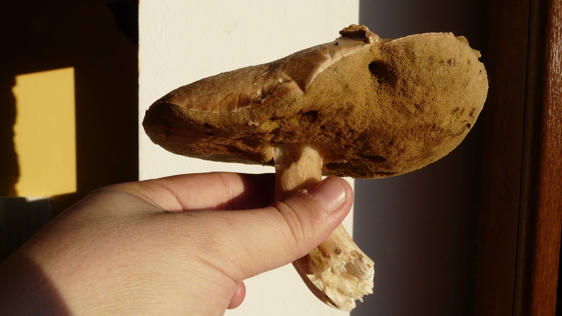 Un saludo, al estar tan pasado es más difícil acertar con él. Creo que edulis no es, al tenerlo cogido por el pie no se puede apreciar bien el mismo, esto hace más difícil el clasificarlo correctamente.