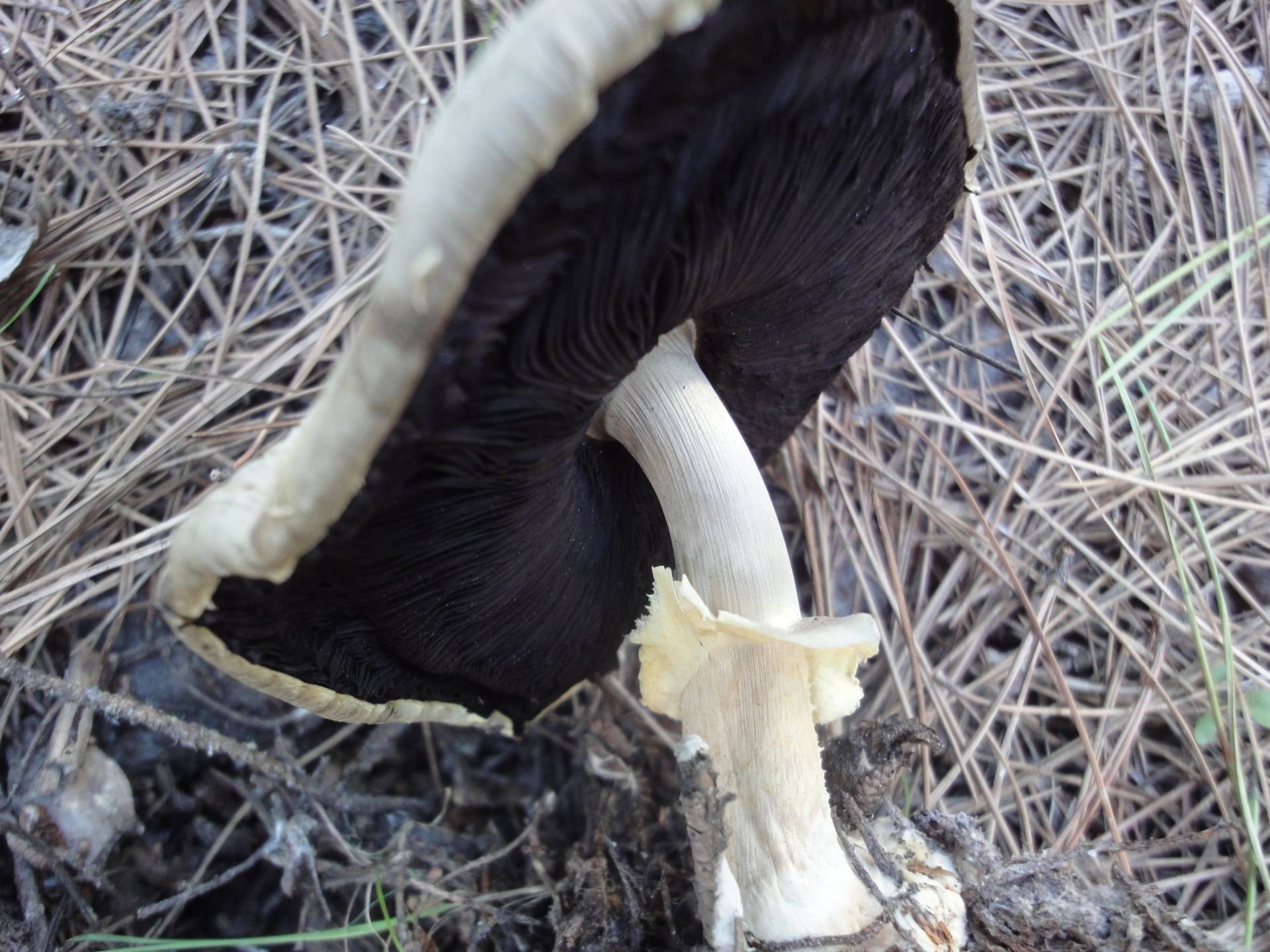 Eso es por que le ha llegado su hora Gotilla, cuando ya están las laminas así negras es que ya esta soltando todas sus esporas, un saludo.