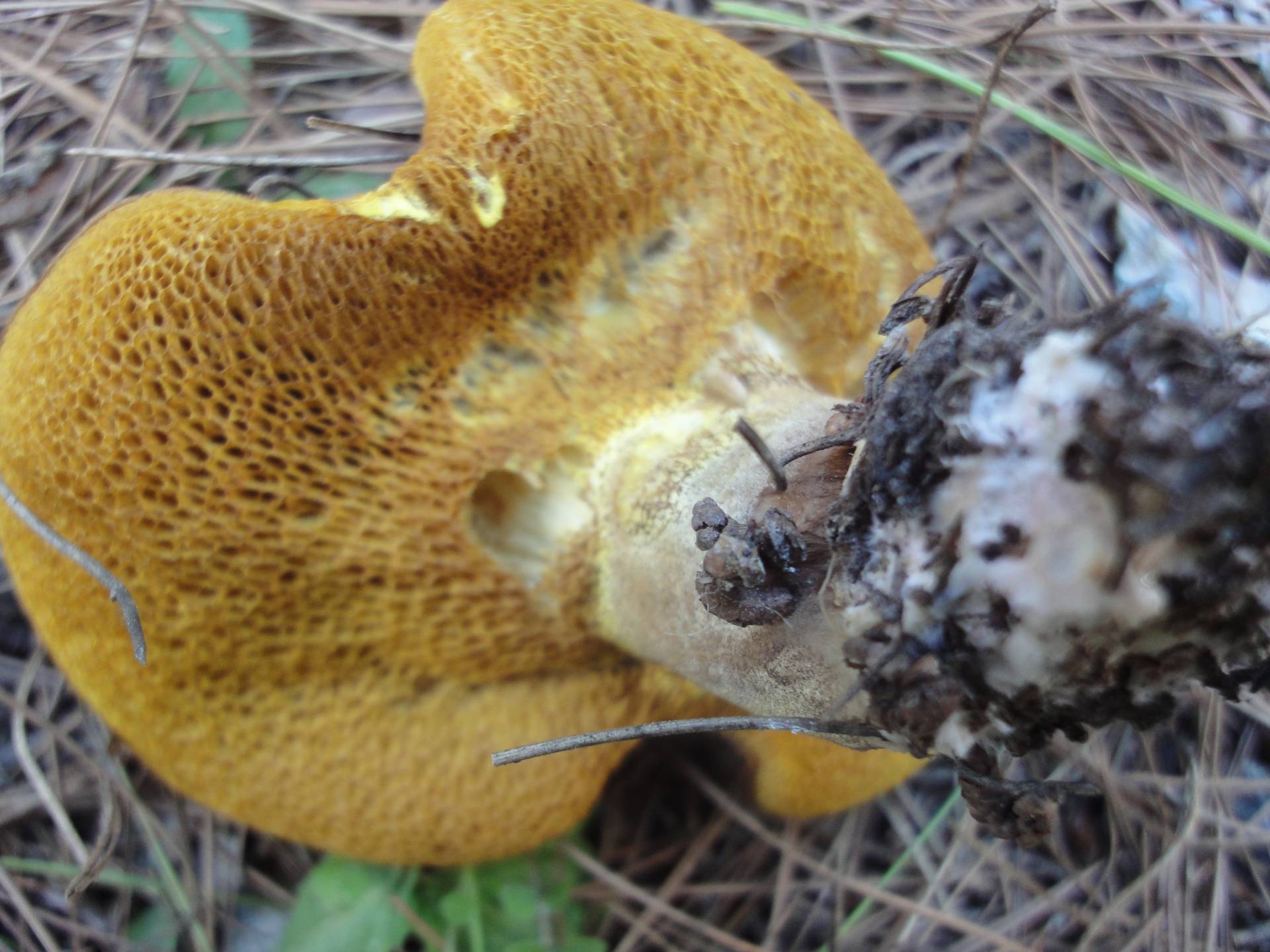 Estos no eran pegajosos por arriba...los pegajosos son los suillus no?este no es bellinii!!! lo tengo clarisimo. jejeje. Podria ser boletus granulatus?Por arriba era suave!!ademas se aprecia en la foto que los restos de pino no estan pegados, estan encima pero no como el otro que se quedaba pegado.Fijate en las imagenes, veras como no es viscoso!