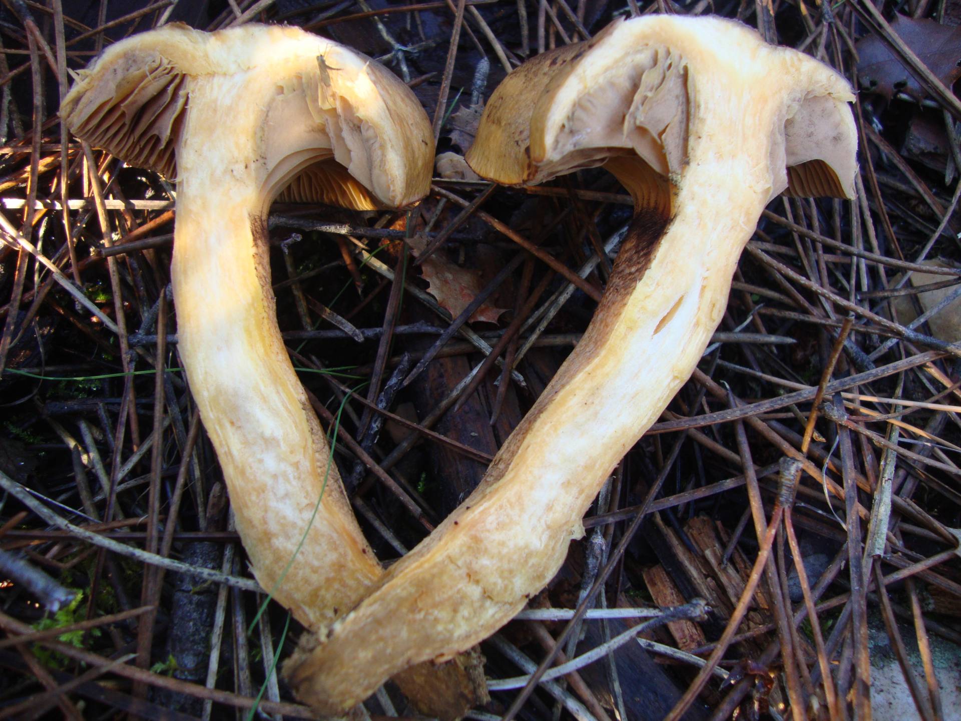 Chroogomphus Rutilus (pie de perdiz). Es lo que pienso, aunque hay algunas variantes, como la vinicolor y algunas mas que tambien se asemejan bastantes. Miralo y me cuentas.Saludos.
