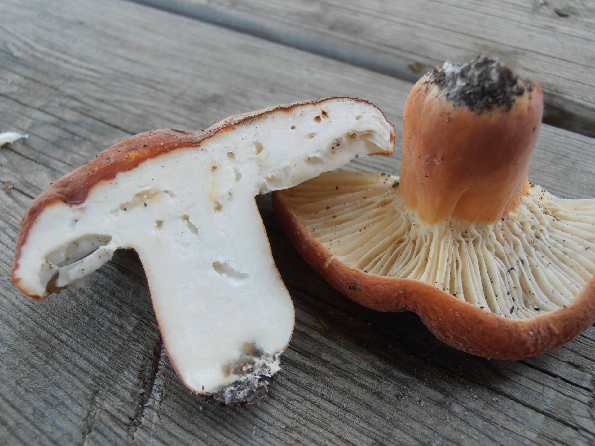 Yo te lo digo. Lactarius Rugatus (Niscalo arrugado o Niscalo melocoton) a mi me encanta su sabor. Poco conocido, abunda en nuestros pinares, hasta tal punto de poder llenar un canasto en una tacada. Muchas veces, no llega a salir de las agujas, viendose solamente el abultamiento de esta debajo de ellas, es crujiente y de buen sabor . Exuda un latex abundante y blanco a parduzco sobre las laminas, esta considerado buen comestible. En la zona norte, existe un pariente, llamado Latario Volemus, resultando igual de comestible.Espero haberte ayudado, la claridad de tus fotos ayudan muchisimo. Saludos.
