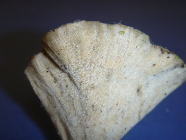 Lo que esta claro es que tiene poros... asi que puede ser un Polyporus... y hasta hay puedo leer