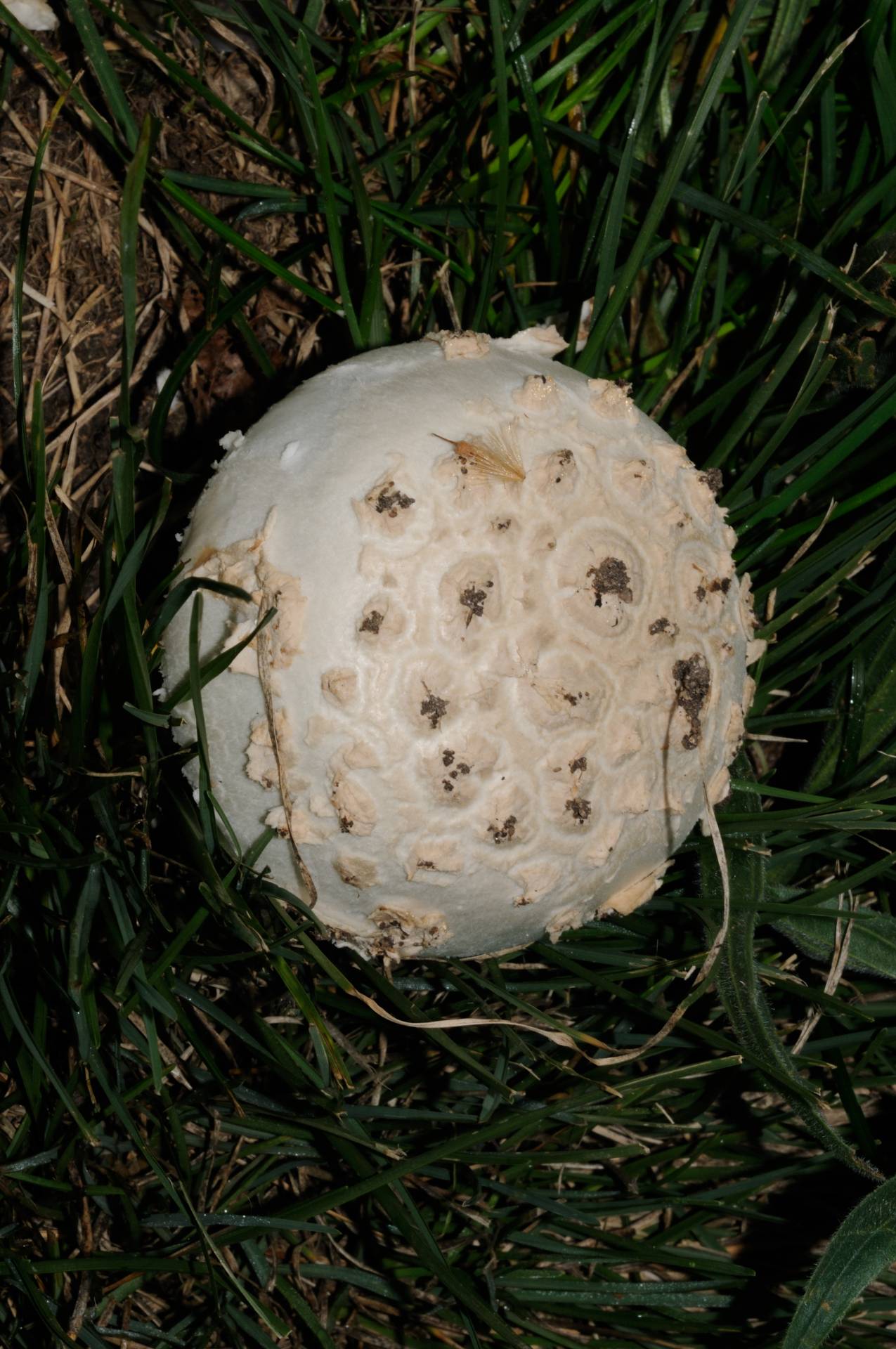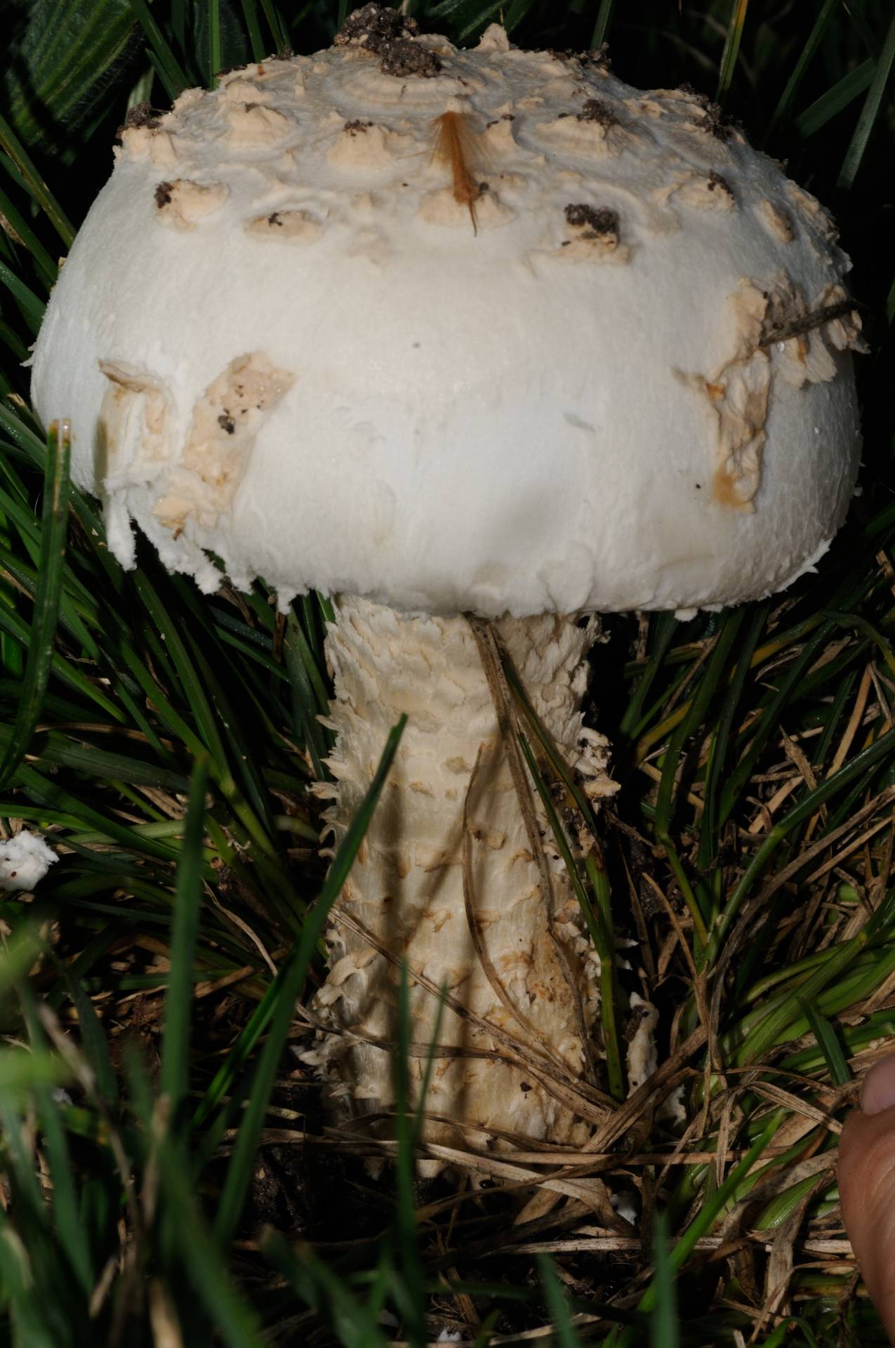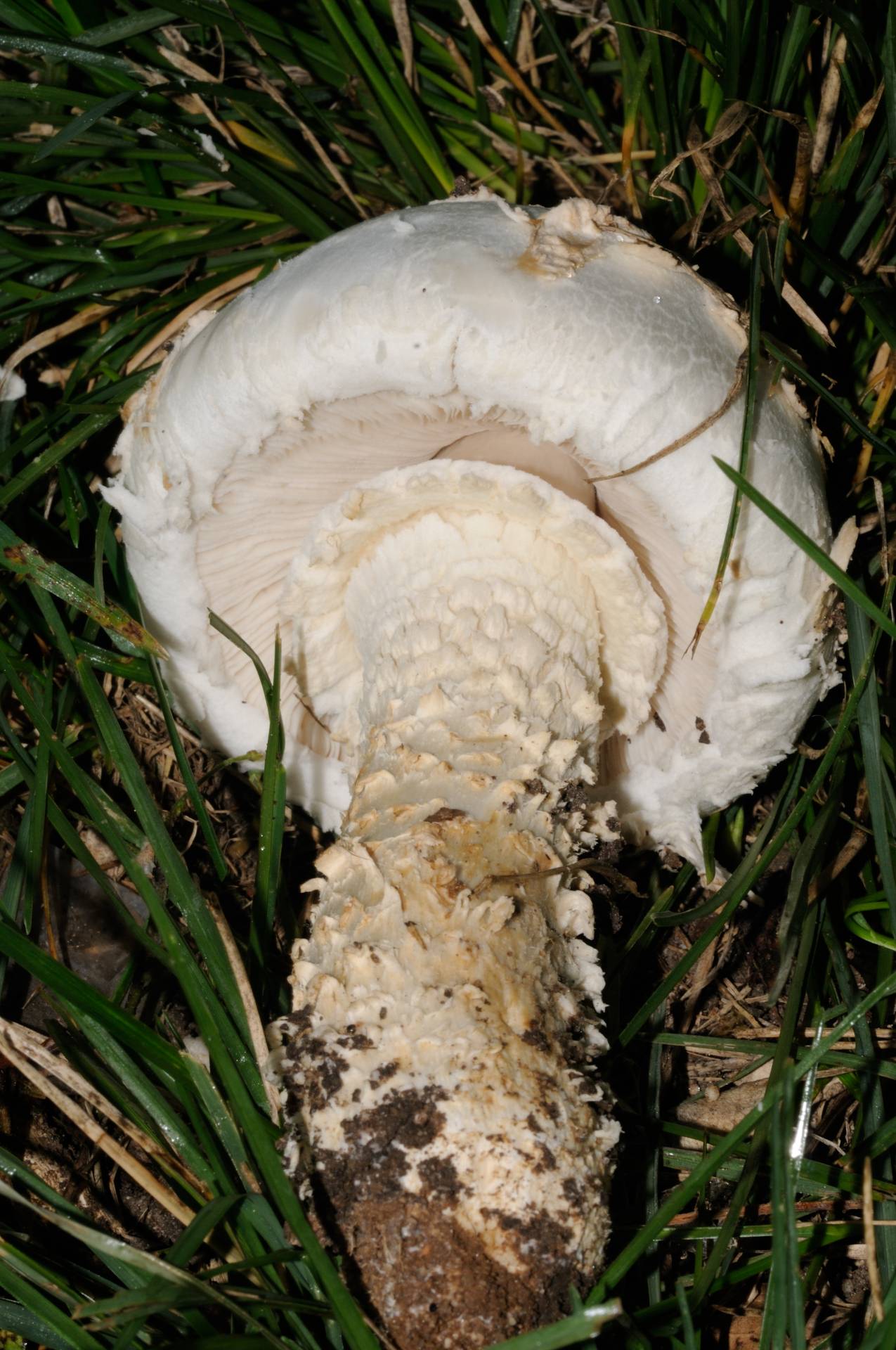 En un principio uno piensa en algun tipo de macrolepiota, pero claro, lo descarta el color blanco y las escamas en el pie. Como veis, la hierba estaba bastente alta, el mismo dia por la tarde me la encontre recien cortada y ni rastro de setas.
