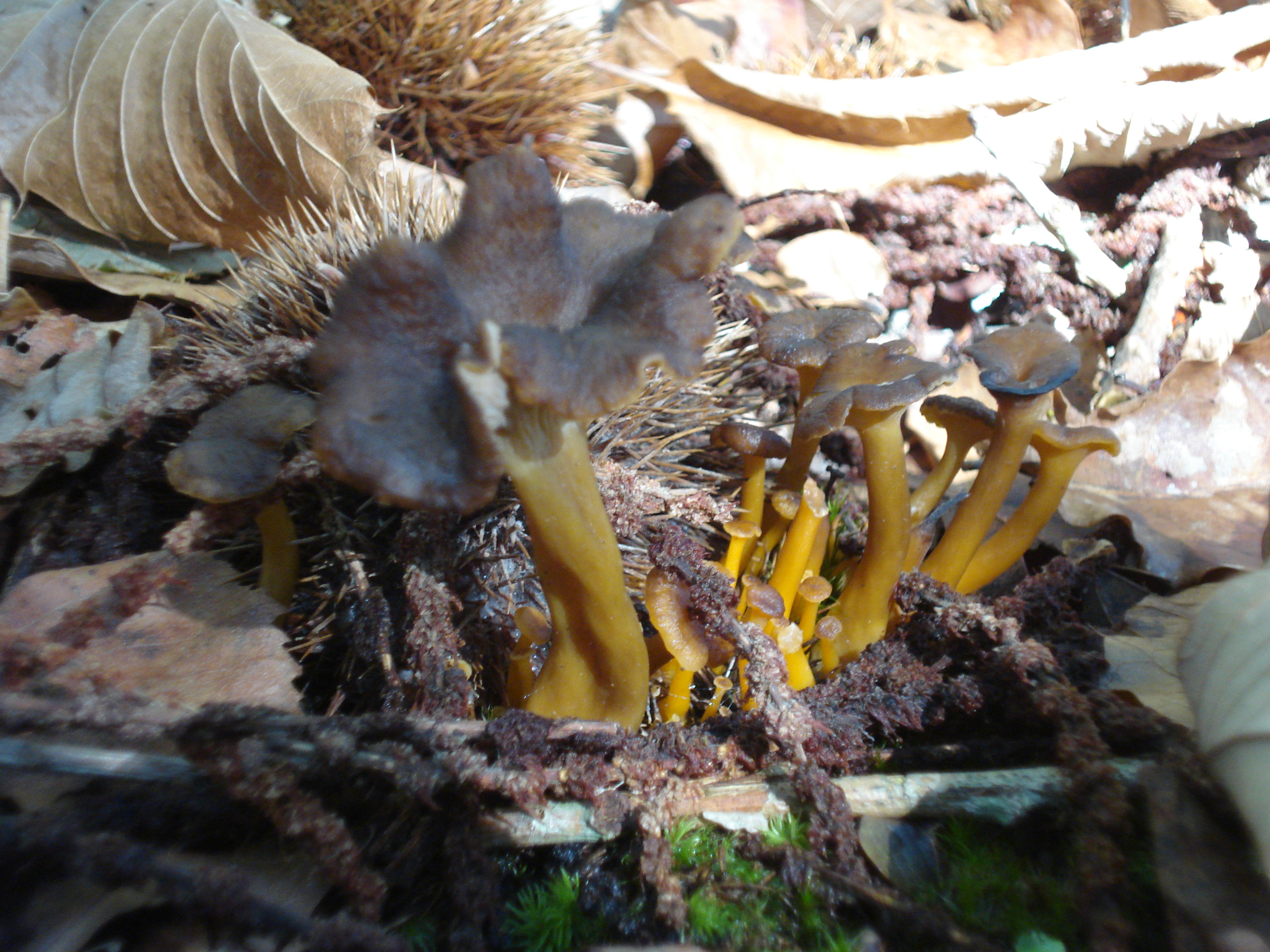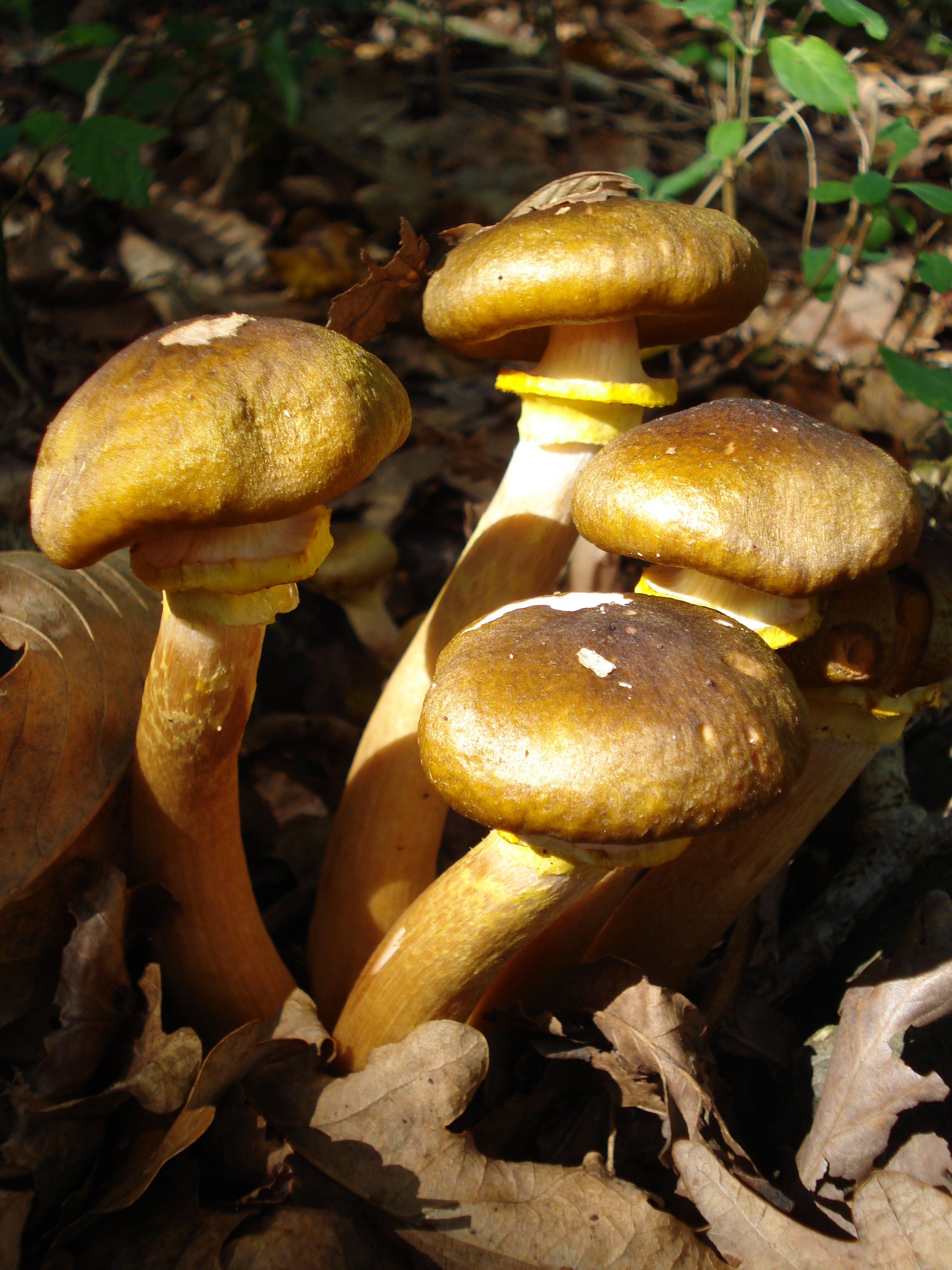la Armillaria mellea tiene una variedad lutea, con anillo amarillo y tendencia a amrillear en el sombrero, puede tratarse de esa especie, que no es la misma que la Armillaria lutea=Armillaria bulbosa.