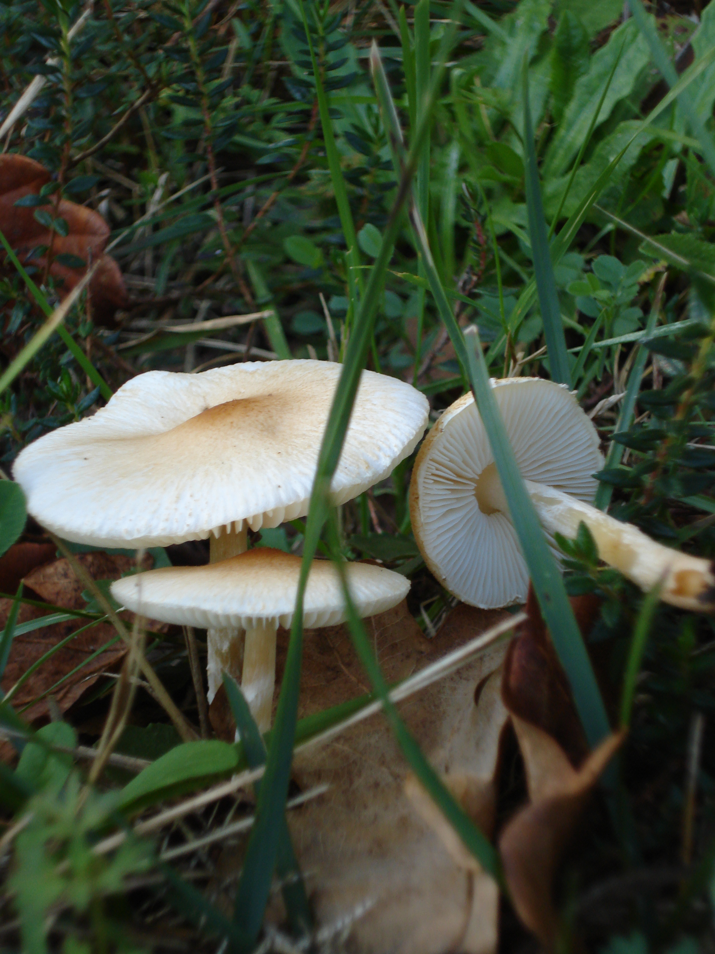 Es una Lepiota ignivolvata, se pone de color pardo anaranjado en el pie a partir de la base, si estoy en lo cierto, que creo que si, su tamaño podrá superar los 5 cm de diámetro pero no los 10.