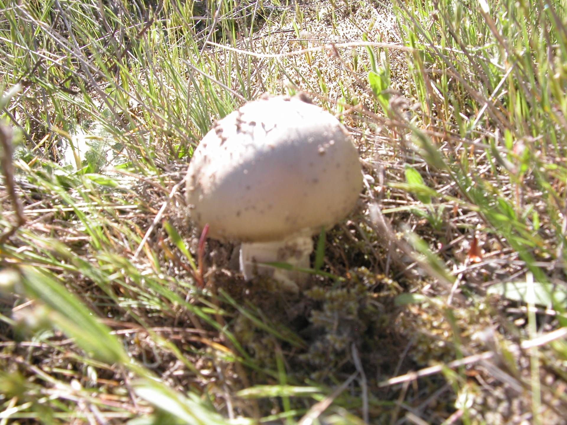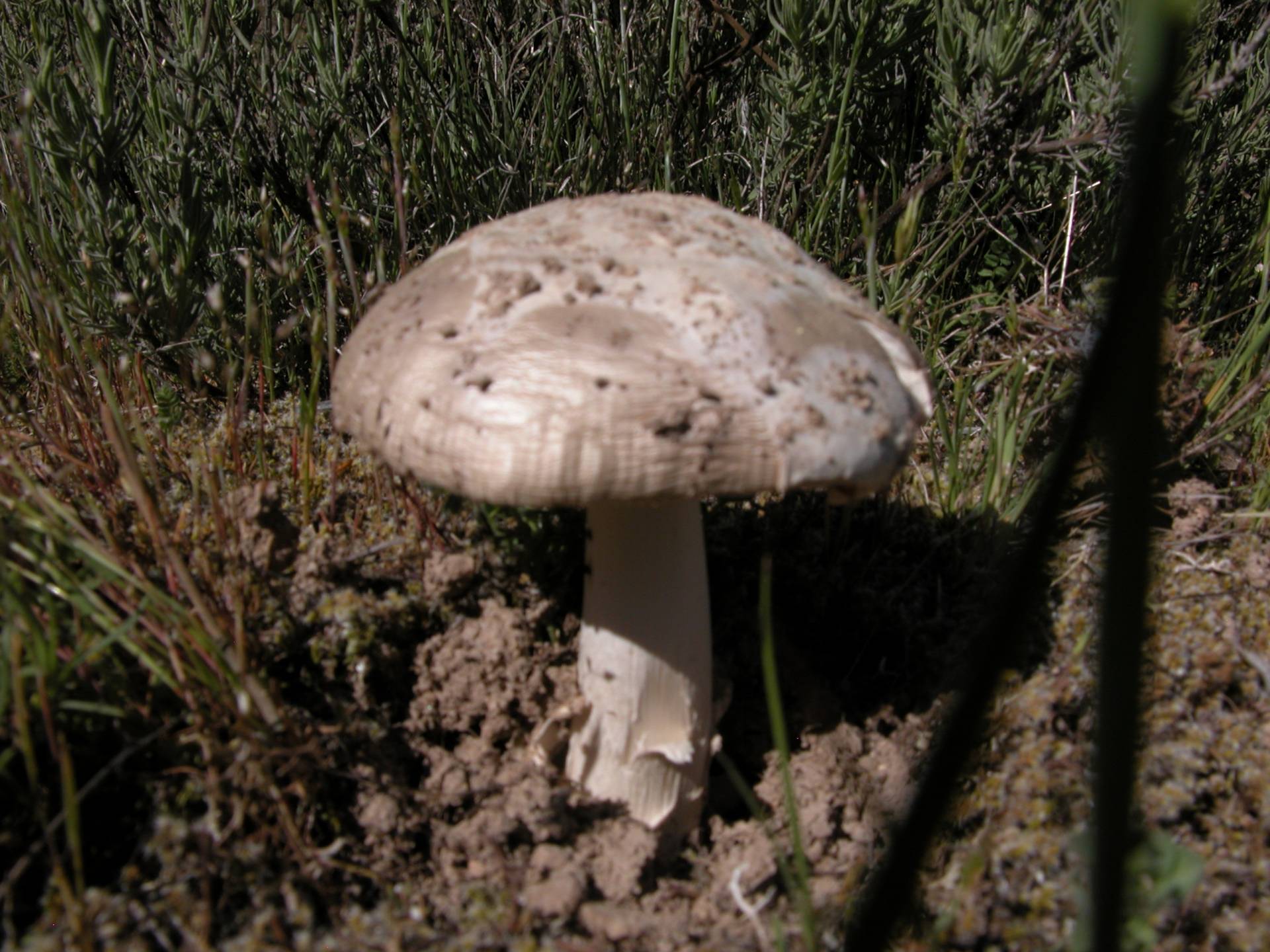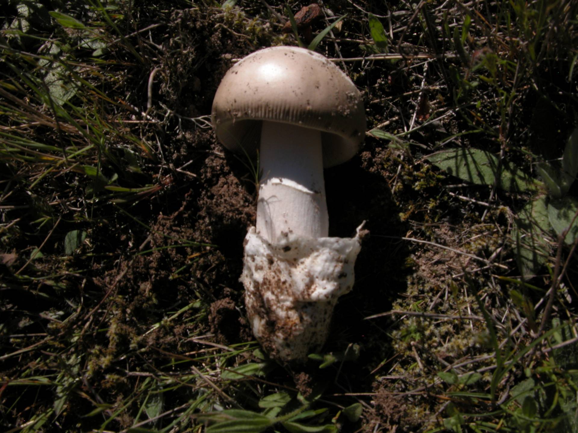 Sombreo de 5 a 8 cm, de color pardo claro con restos de volva muy finos y mas claros.