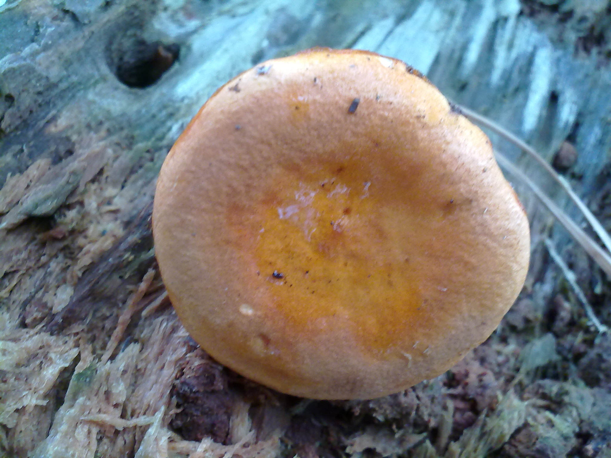 Hola Duende,las cantharellus no tienen laminas.Podría tratarse de un Lactarius Canfhoratus?aunque no veo latex.No me cuadra con el Rebozuelo Anaranjado al que os referís.