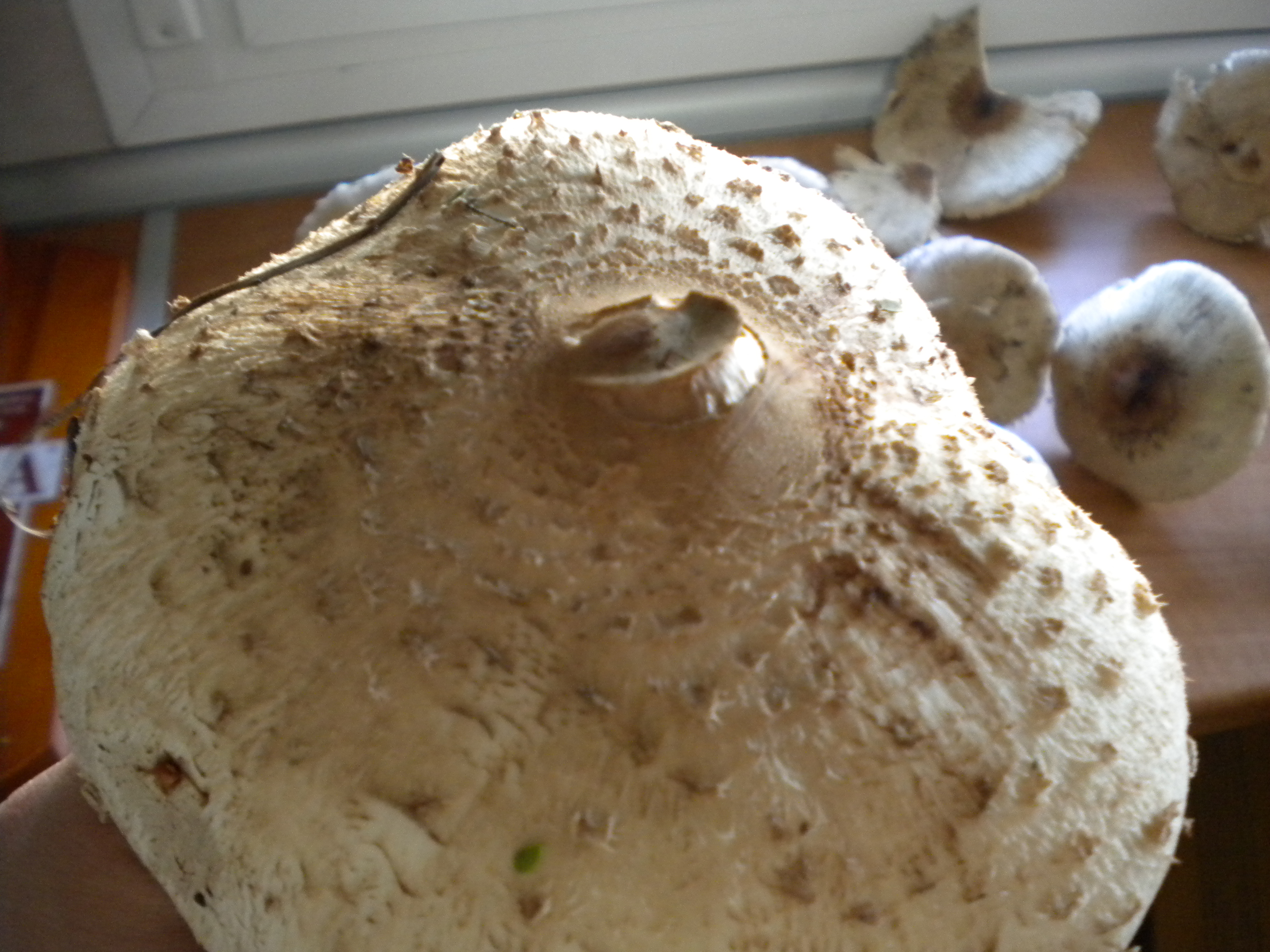 Dicho esto, que es mi obligación dado la que está cayendo, con tantas intoxicaciones por setas en los telediarios, te comento lo que me parece, para mi tienes dos especies distintas, las más grandes con las escamas repartidas me parecen Macrolepiota procera, y las que hacen como una estrella, la que tienes en la mano, me parece la Macrolepiota konradii.