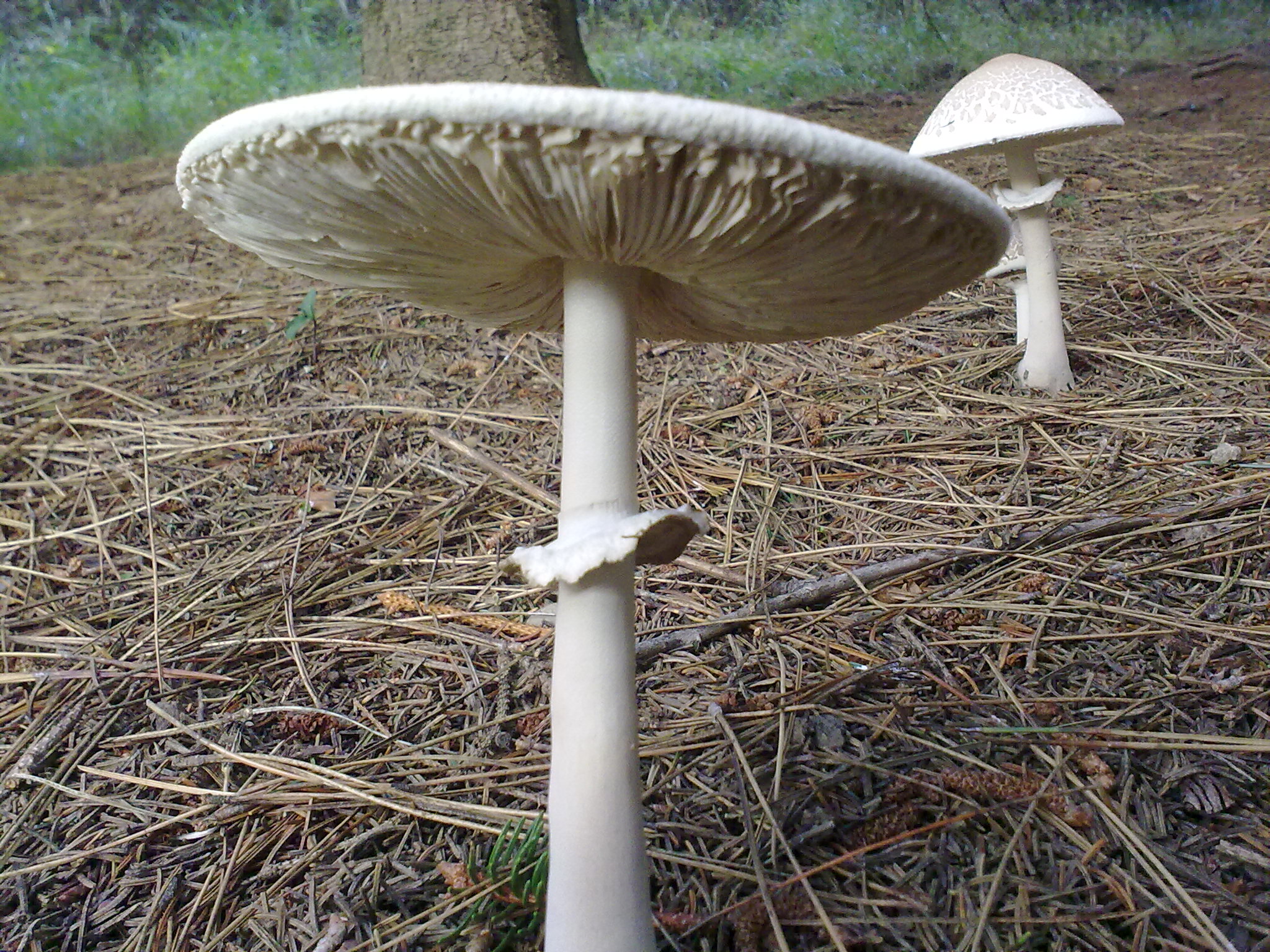 La posible Lepiota me parece el Chlorophyllum molybdites, una especie muy tóxica, la otra no estoy seguro, está rara, pero parece Lepista nebularis.