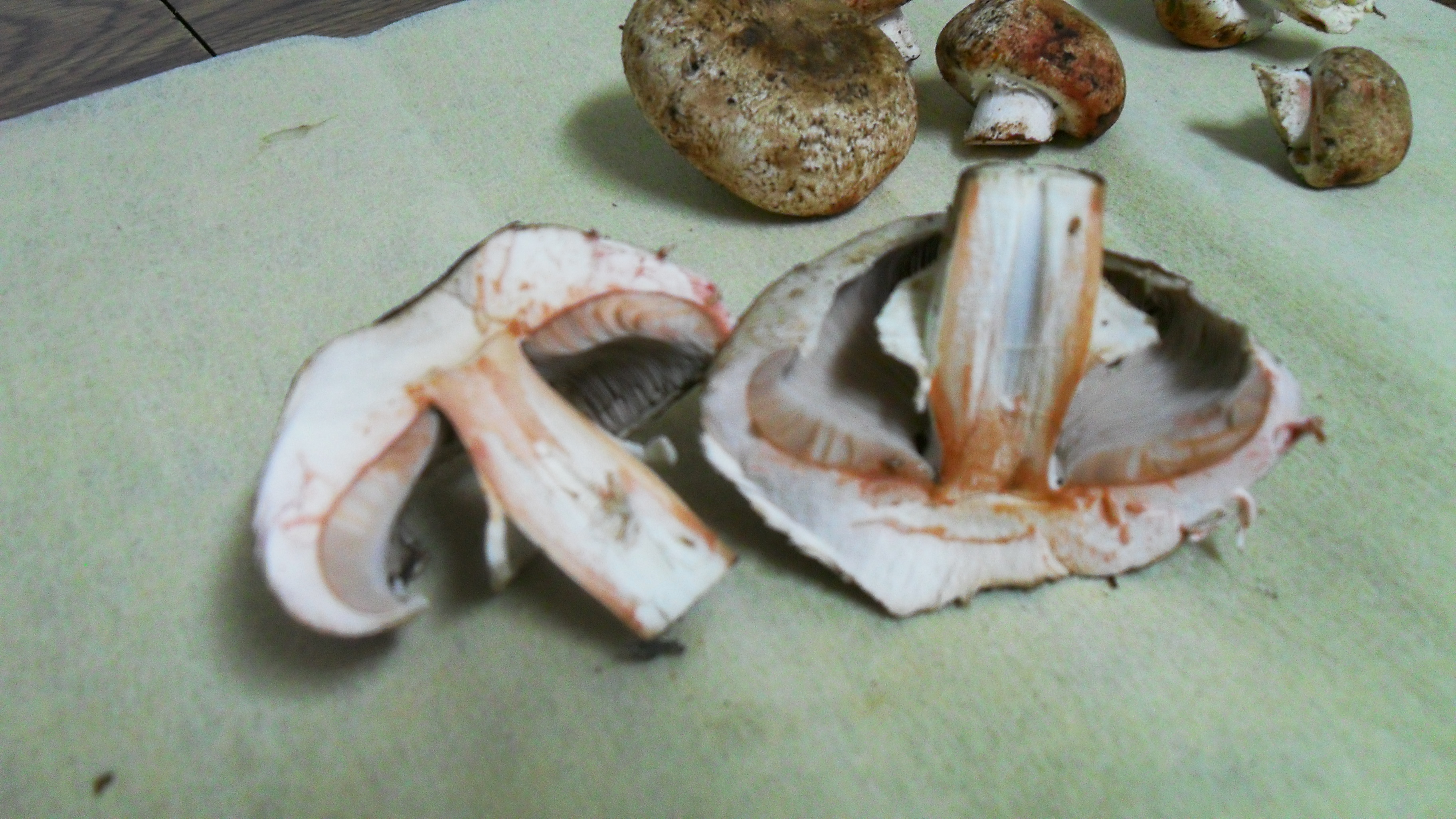 Como me ponen estos Agaricus que enrojecen, para mi los mejores. La especie está muy clara, no tengo dudas, Agaricus langei.