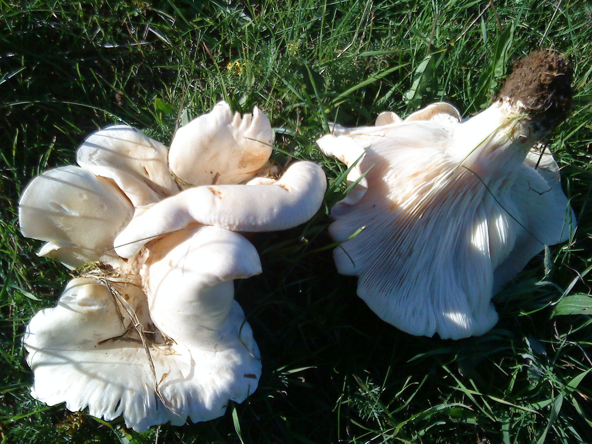 todos los años aparecen en el mismo sitio, un prado de montaña a unos 800m de altitud, se hacen setas realmente enormes, que terminan con el sombrero profundamente deprimido y llegan a alcanzar mas de 20 cm de diametro, estos de la foto son ejemplares de este fin de este martes, son jovenes y todavía no había ninguno muy grande, calculo que tengan los de la foto unos 12 cm de diametro... ahí va la foto...
