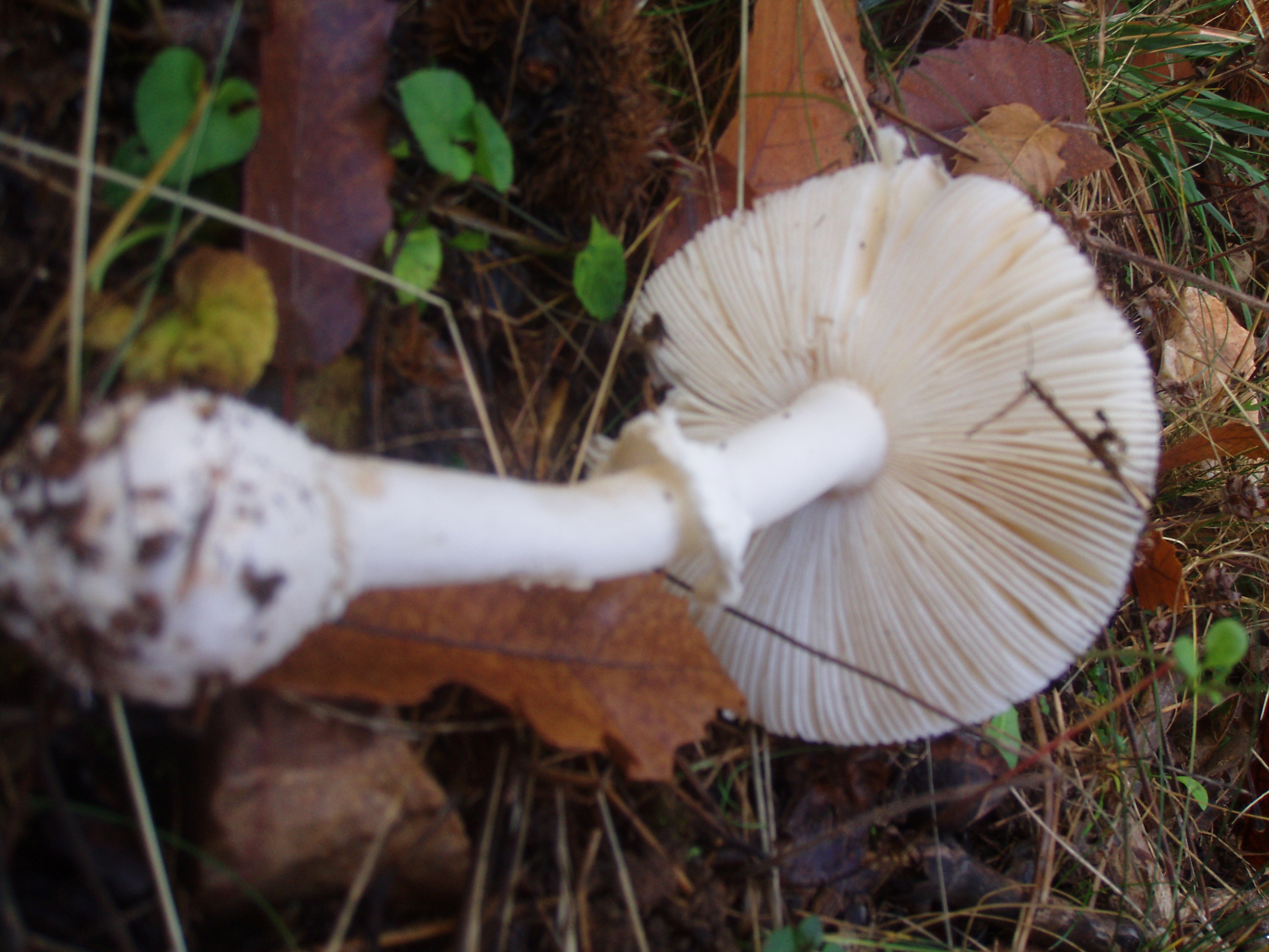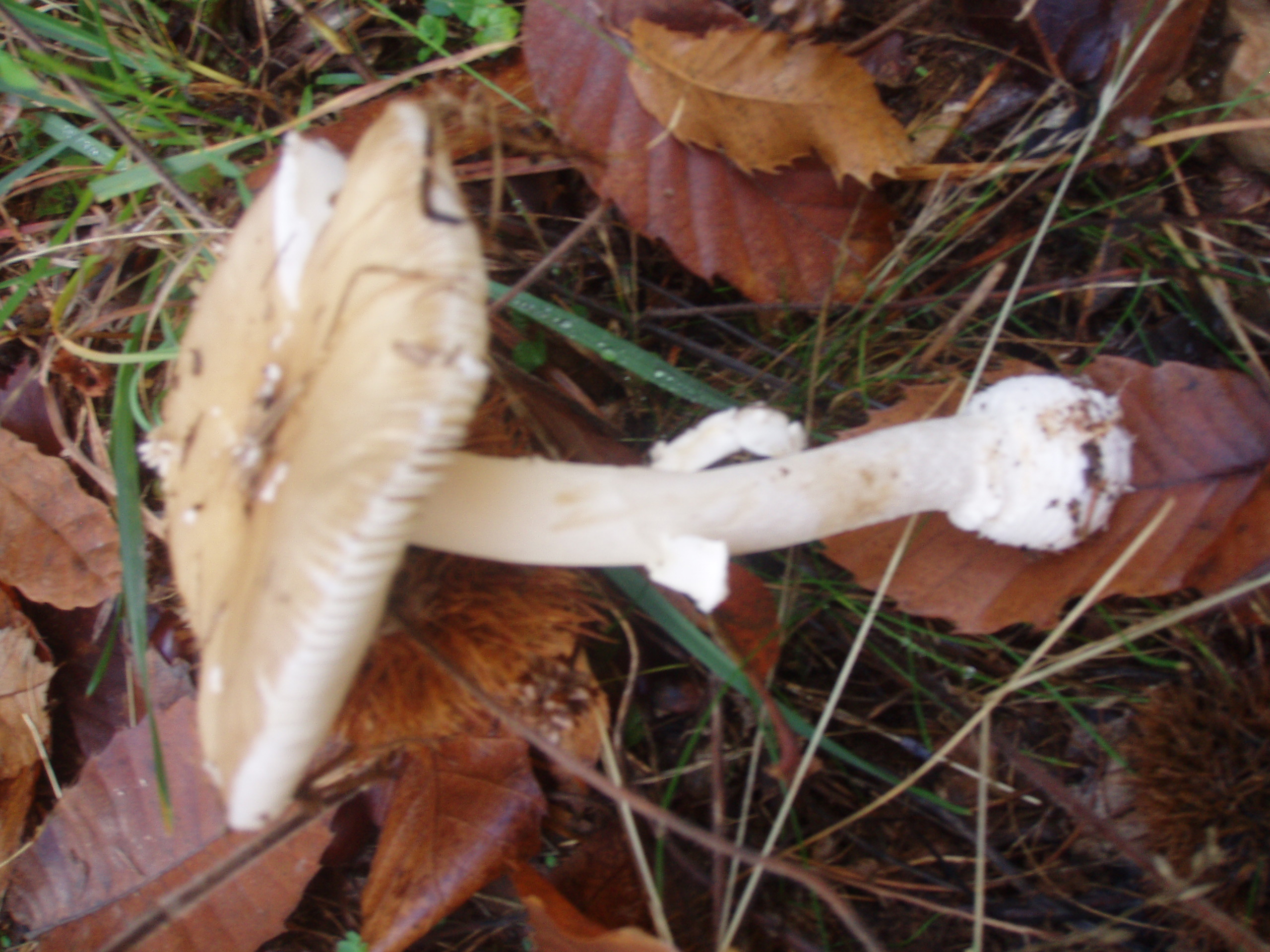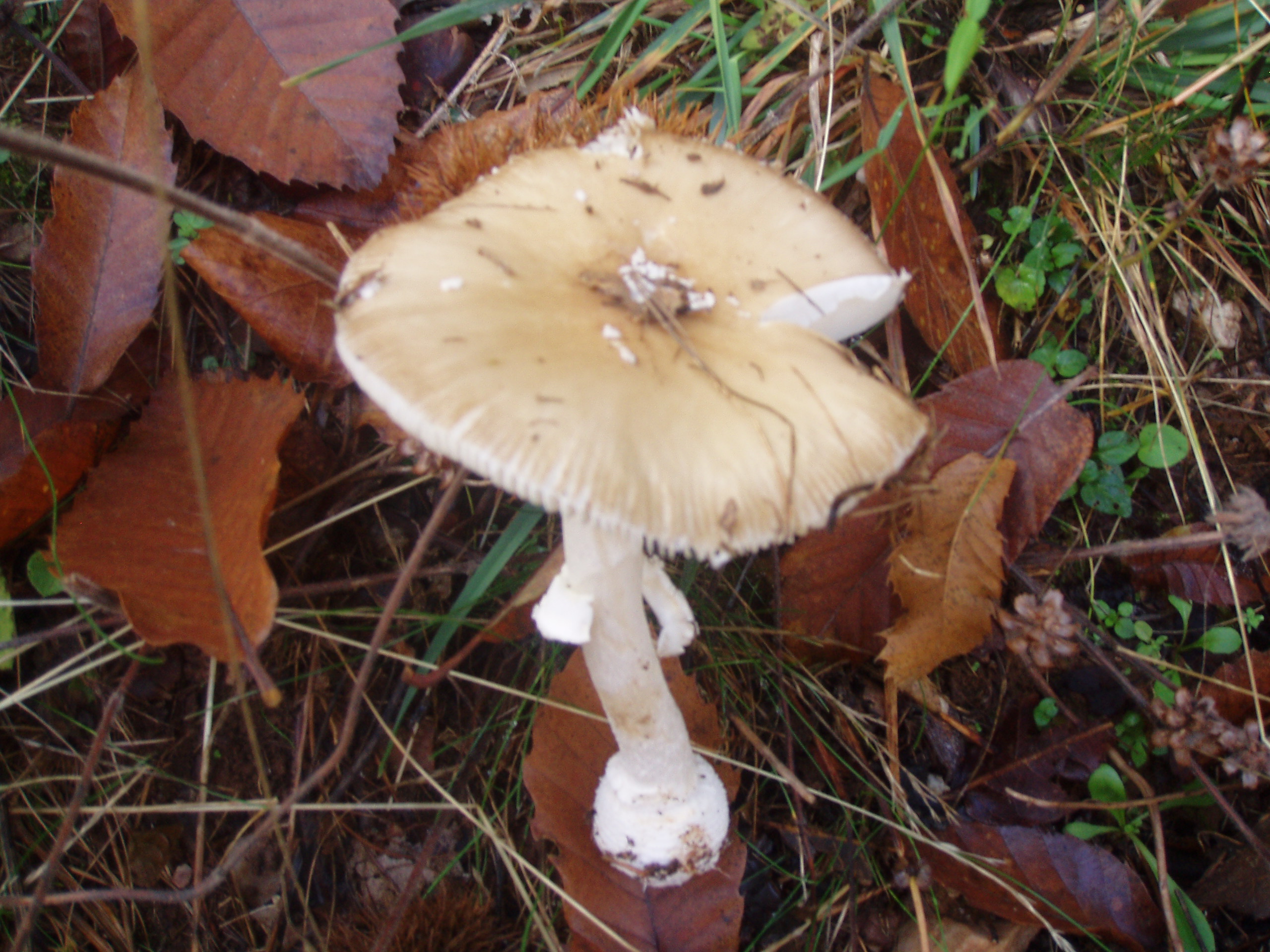 dudo entre panterina, pero no tiene las tipicas escamas y descarto que hayan sido lavadas por la lluvia, tambien podría ser A.Phalloides, pero esta no tiene el margen estriado... no se , cual creeis que pude ser??