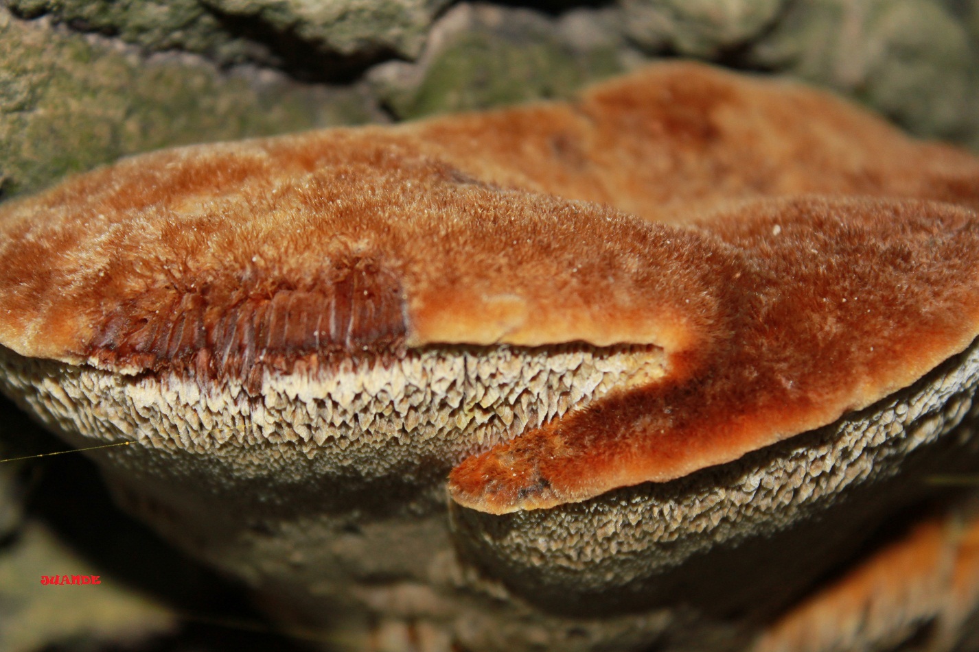 Por la superficie vellosa su color y los agujeros en el himenio por los que se produce la exudación, creo que se trata de Inonotus hispidus.