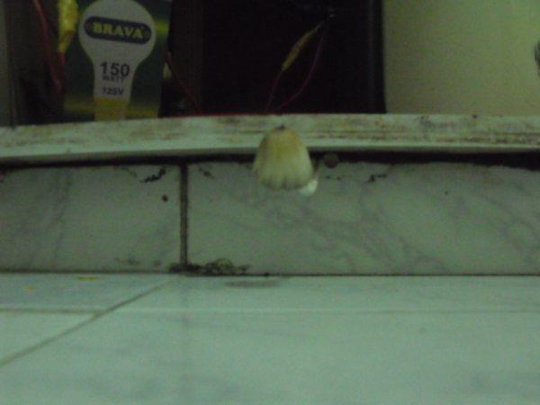 Te aclaro el ciclo de vida entre que crece y aparece la delicuescencia y desaparece es de unas 12 horas, no sé si en el interior del armario hay más parte de tallo, es inascesible y si ha brotado de la parte inferior del estante que es de madera similar al pino (no de melamina, ni de aglomerado). Y piensa que aquí es República Dominicana... y la madera de ese mueble lo lógico es que sea de Estados Unidos o Brasil, ya que aquí prácticamente no hay maderas claras y se importan de esos paises. Gracias.