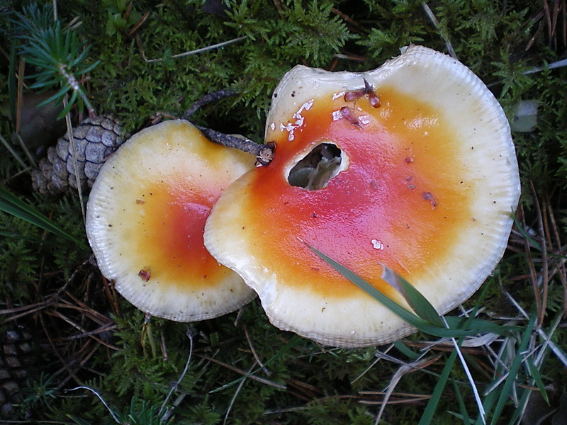 Se que la muscaria, toma distintos colores y tonos. Pero de esta forma, nunca la he visto. Los trocitos de velo la delatan.