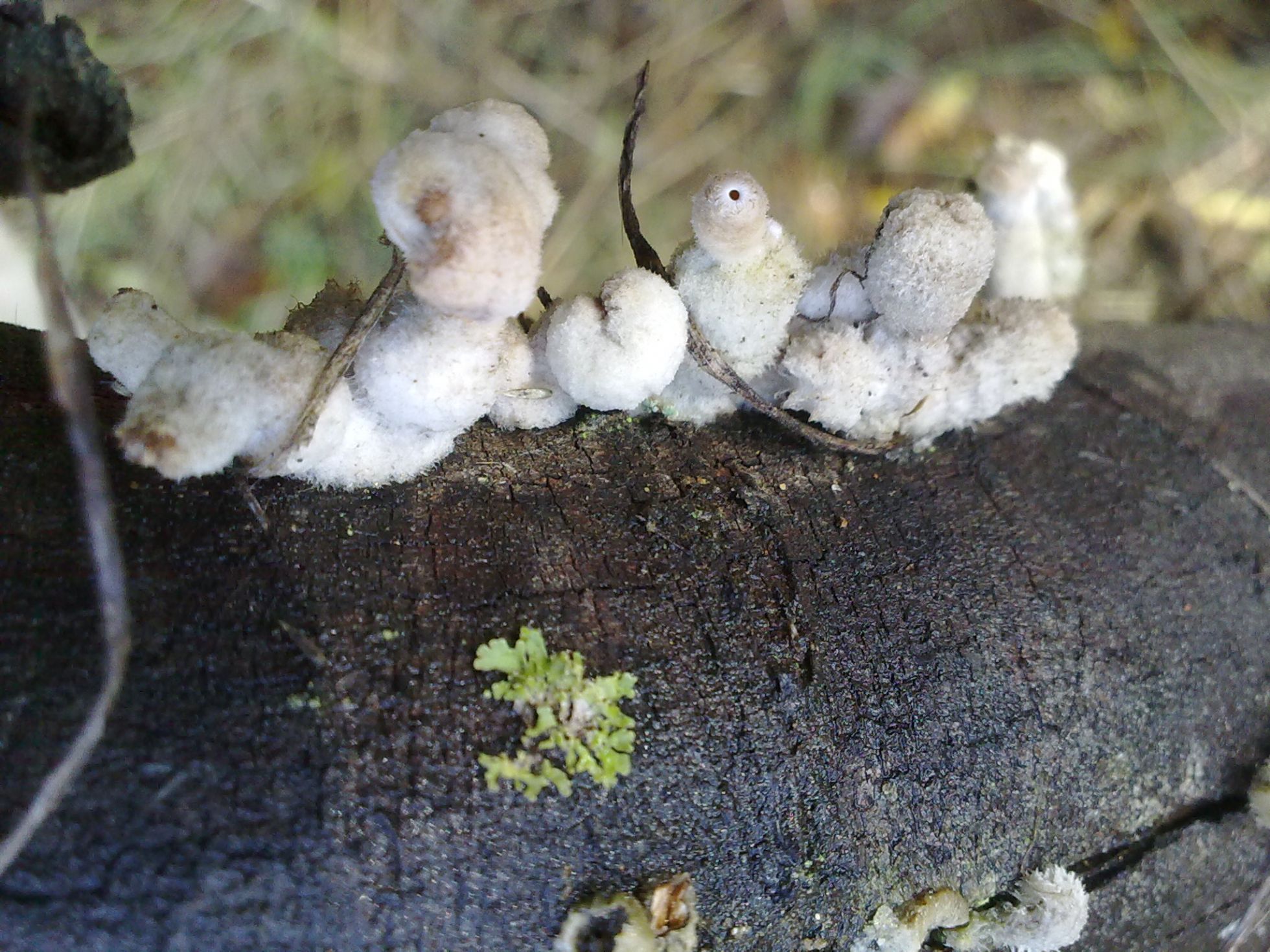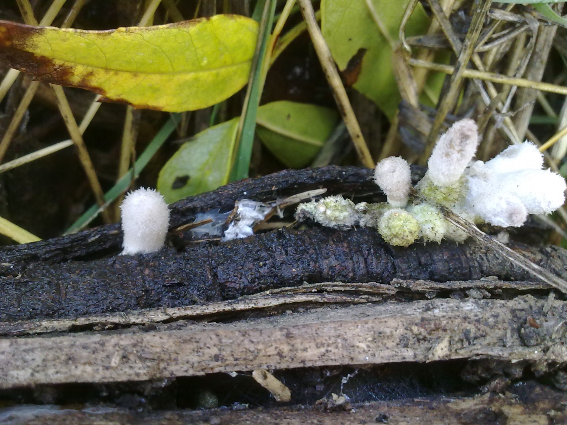 Imagino que habria que buscar por los Mixomycetes. A mi tambien me recuerda algo a algun capullo u ooteca de algun insecto aunque no parece haber un orden ni mucha semejanza ni estructura definida entre cada ejemplar, todo varia bastante