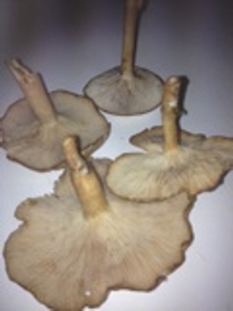 Setas cogidas en pinar.Sombrero blanquecino.5-6 cnts. diametro.Laminas algo decurrentes,apretadas , color blanco-crema.Carne olor harinoso,blanca.Pie hueco de 0,5 cnts. de grosor, de color pardo.Esporada blanca.
