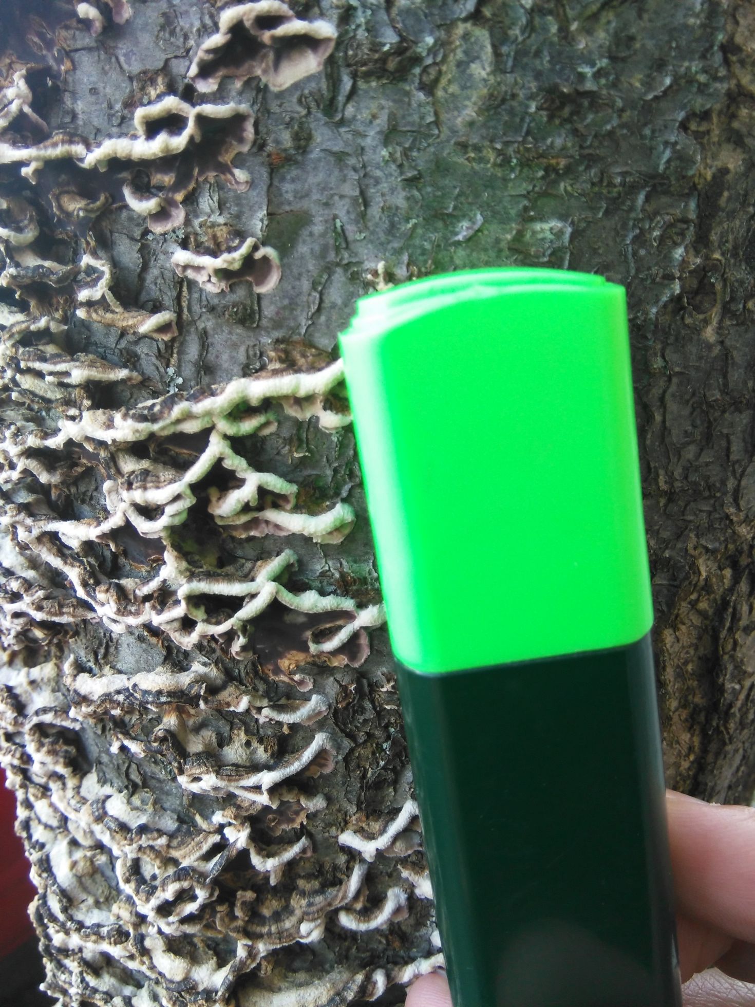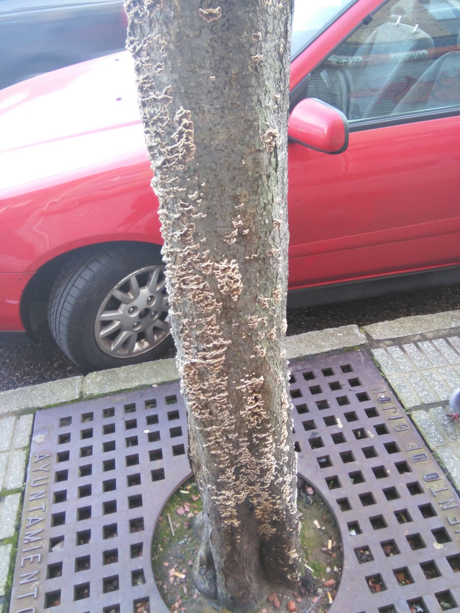 En ciudad, sobre tronco de especie ornamental.