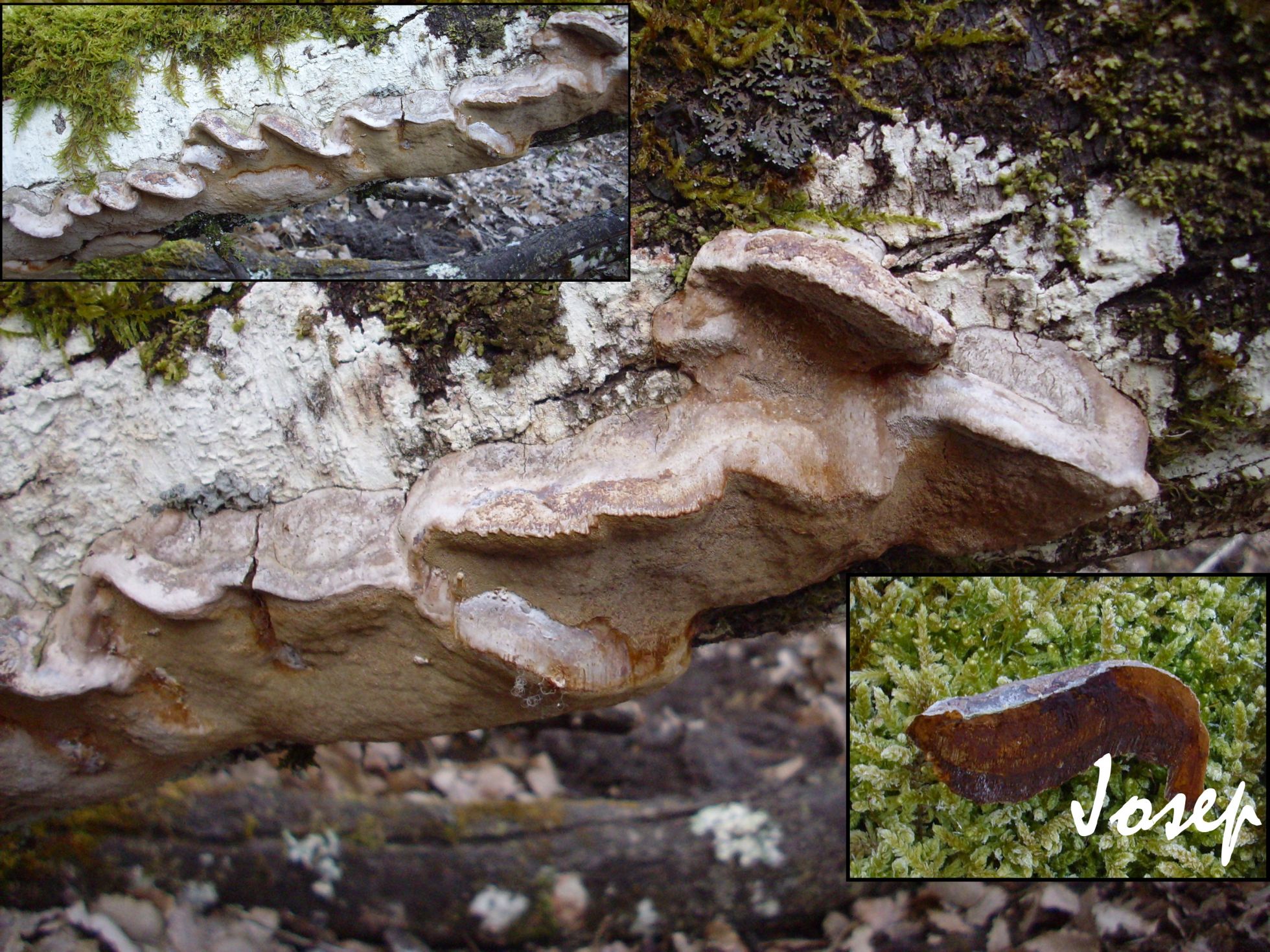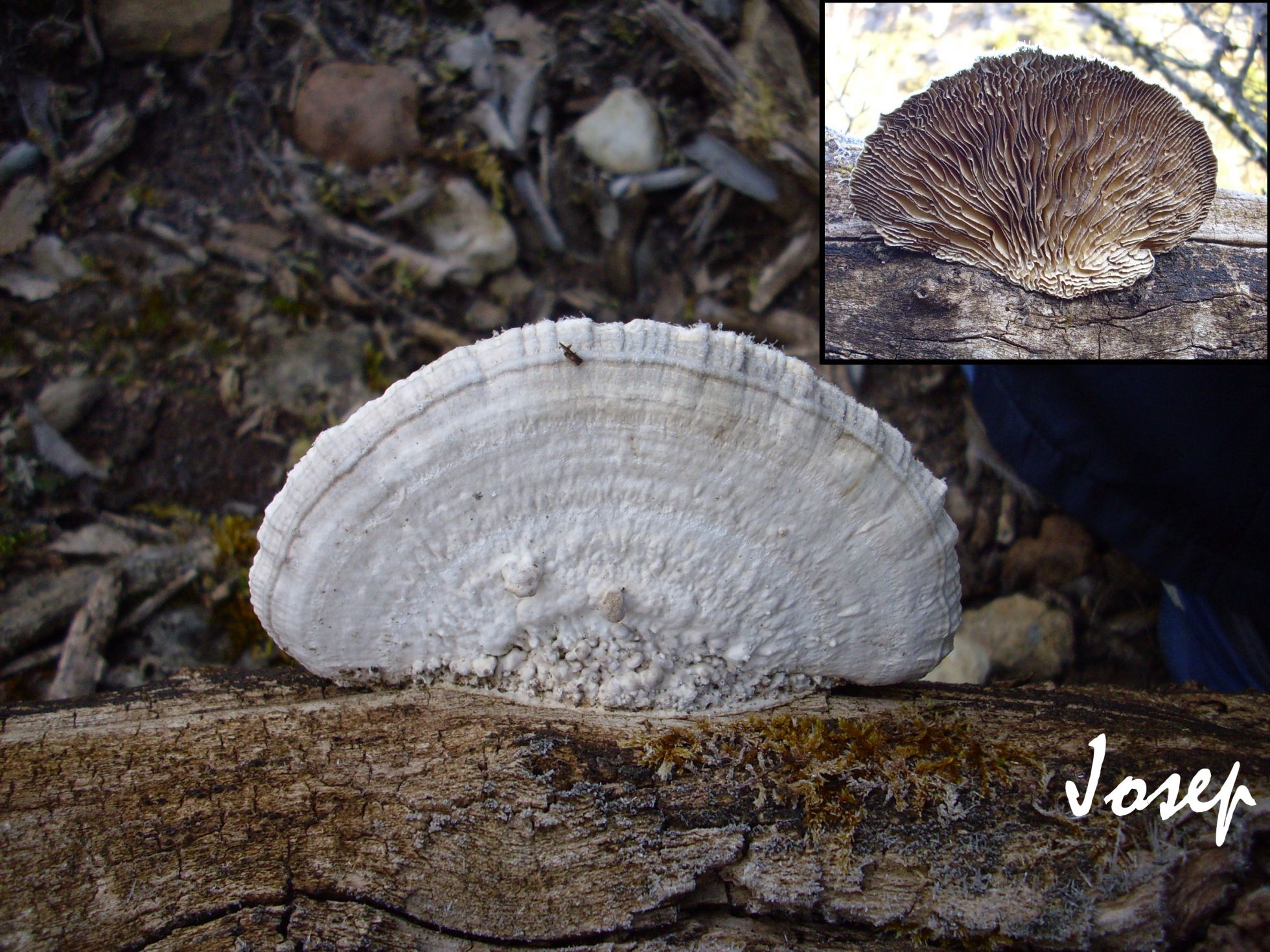 Hola de nuevo Pedro, las fotos las tomé a una altura entre 450 y 500 metros, el bosque que había al lado era de quercus y pinos, al final del trayecto era casi todo pinos con lo que la Fomitopsis Pinicola seguro que era sobre tronco de pino, fue el unico momento que salí un poco del cauce del rio. He encontrado 2 fotos más del himenio del primero y del quinto, no son gran cosa pero ahi van.