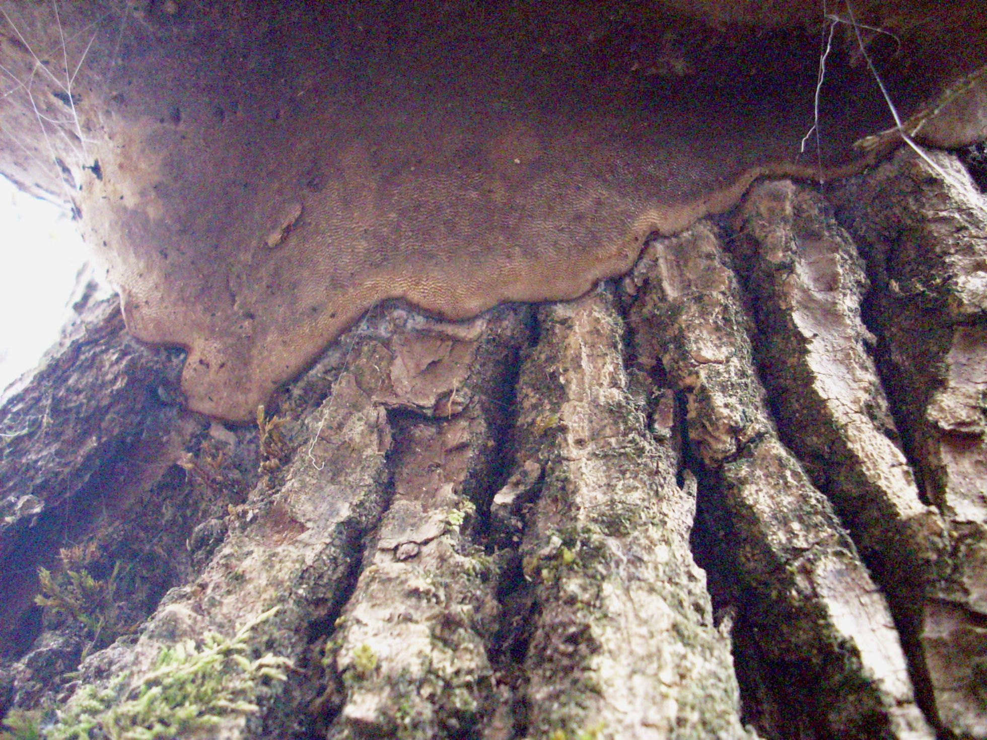 (03) En esta el ejemplar cubría toda la parte de bajo del tronco, el sombrero sobresalía poco y en la sección se aprecian los poros. No se lo que puede ser.