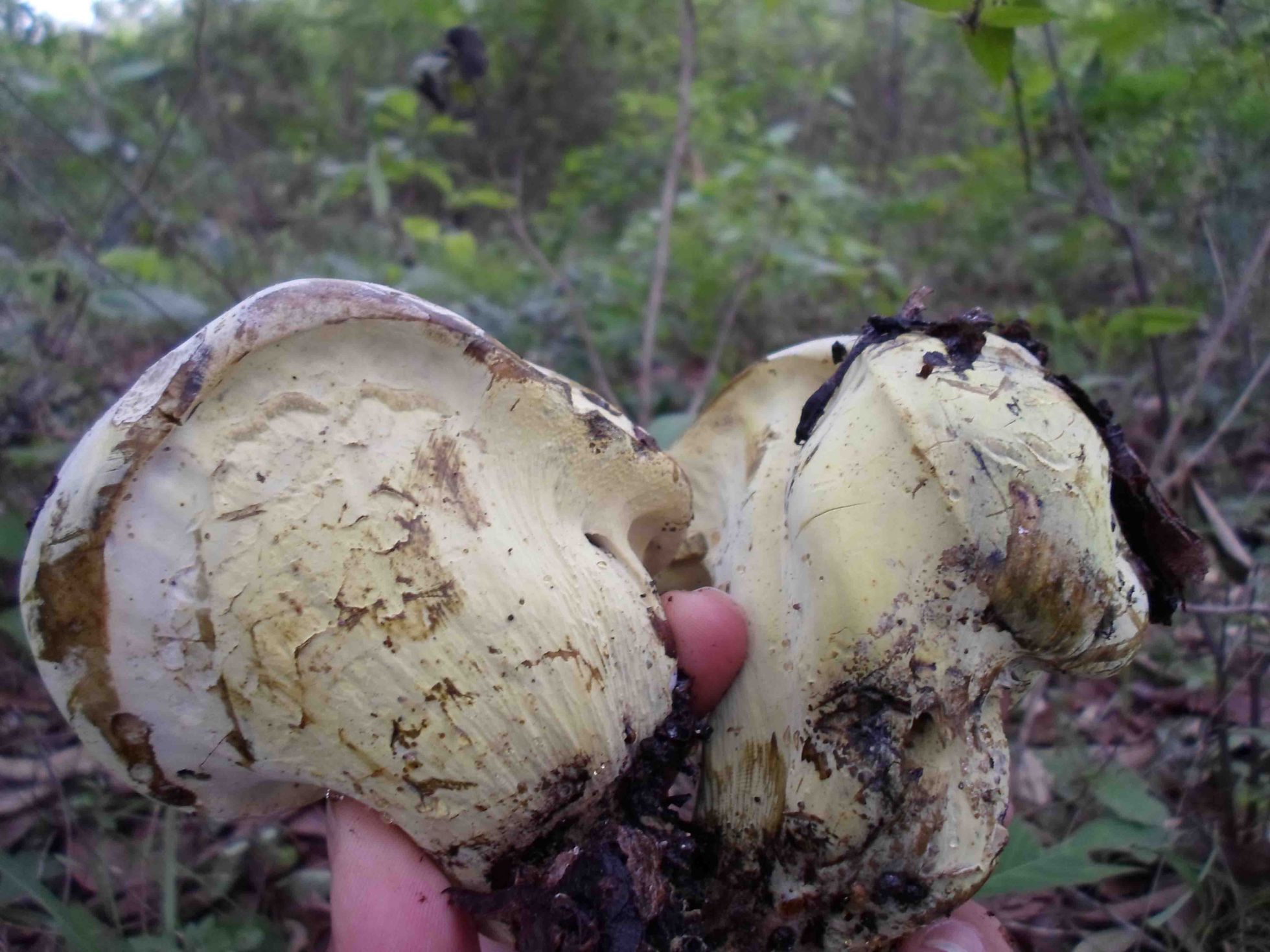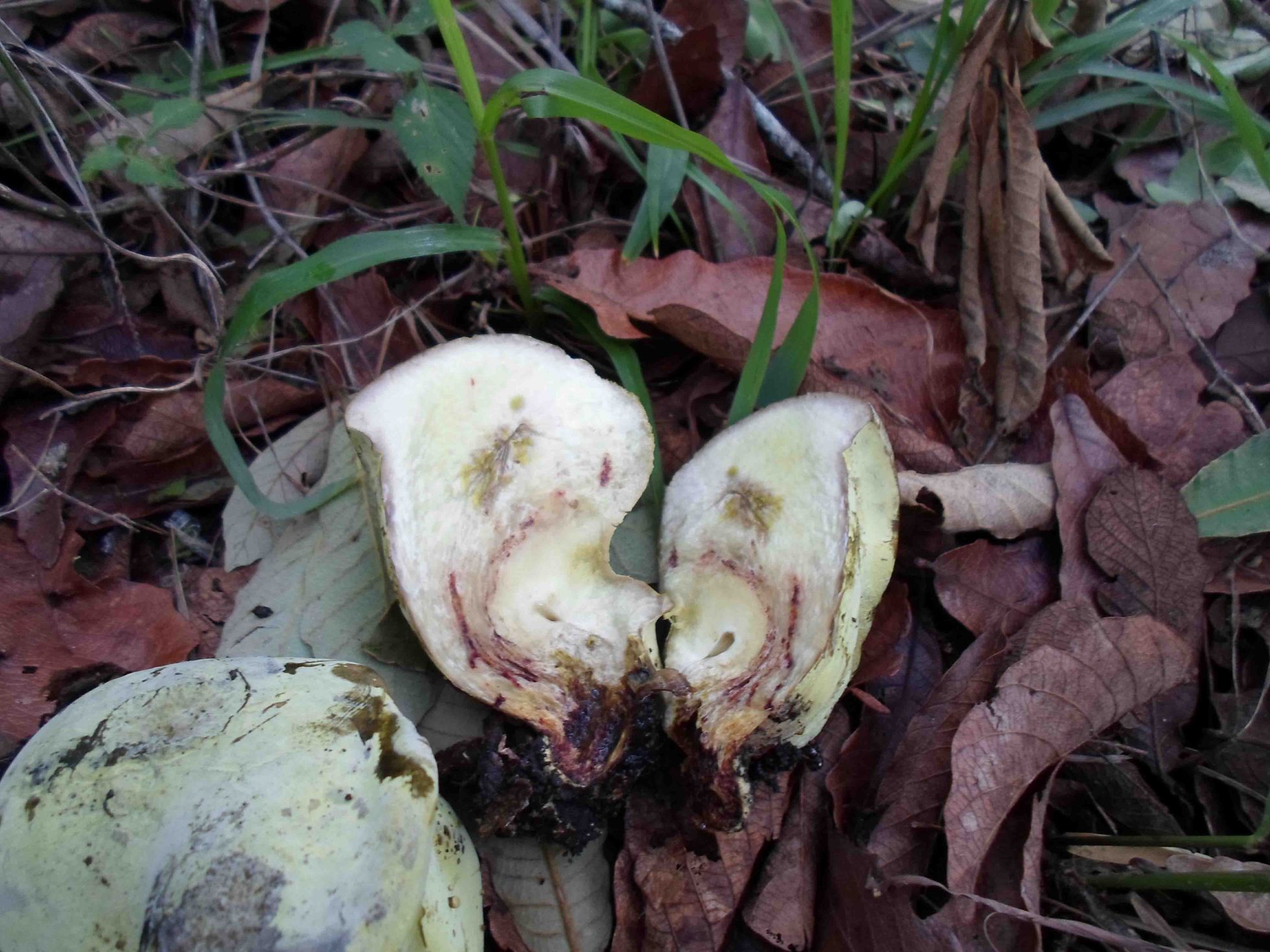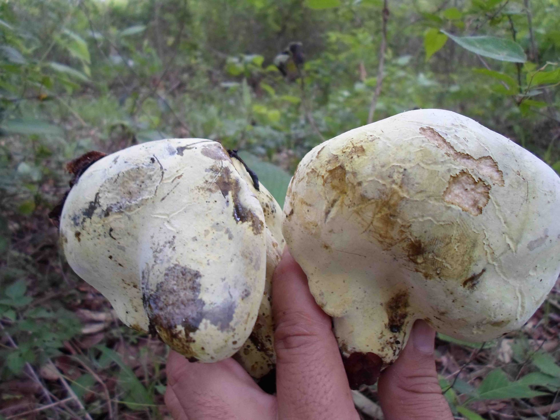 Bien, vamos por partes. Pareciera que en efecto el hongo fuera parasitado por otro hongo. Sin embargo, por la experiencia que tengo con lo observado el año pasado, puedo decir que el aparente boletus no es consumido por el invasor. Yo llevé algunos ejemplares a mi casa y vi que tienen una buena resistencia a descomponerse.