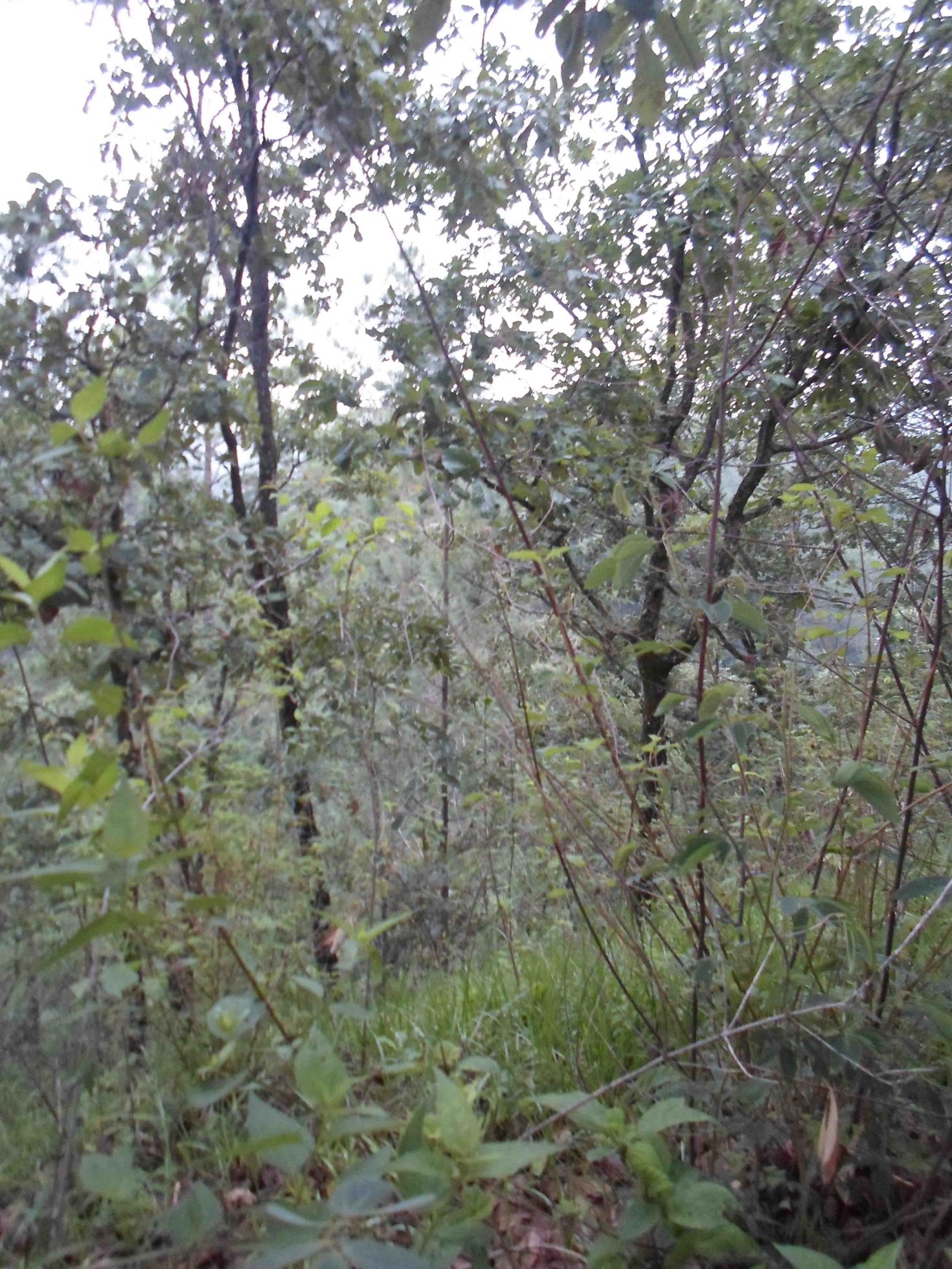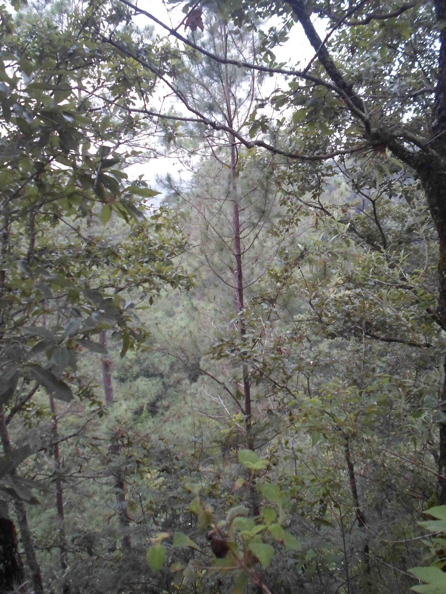 Fui de nuevo al lugar donde brota para verificar unos datos, aunque no encontré ejemplares. Sucede que brotan en una cima. A los lados a unos 10 metros hacia abajo se logran encontrar unos cuantos pinos, tal como se aprecia en estas dos fotos: