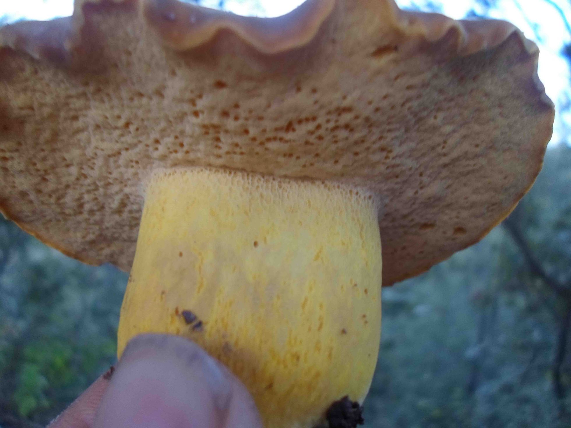 Hola Rubén, para mi es un Suillus , la especie es más complicada quizás brevipes, bouderi, etc. Si puedes aportar más datos sería bueno para identificarlo plenamente.