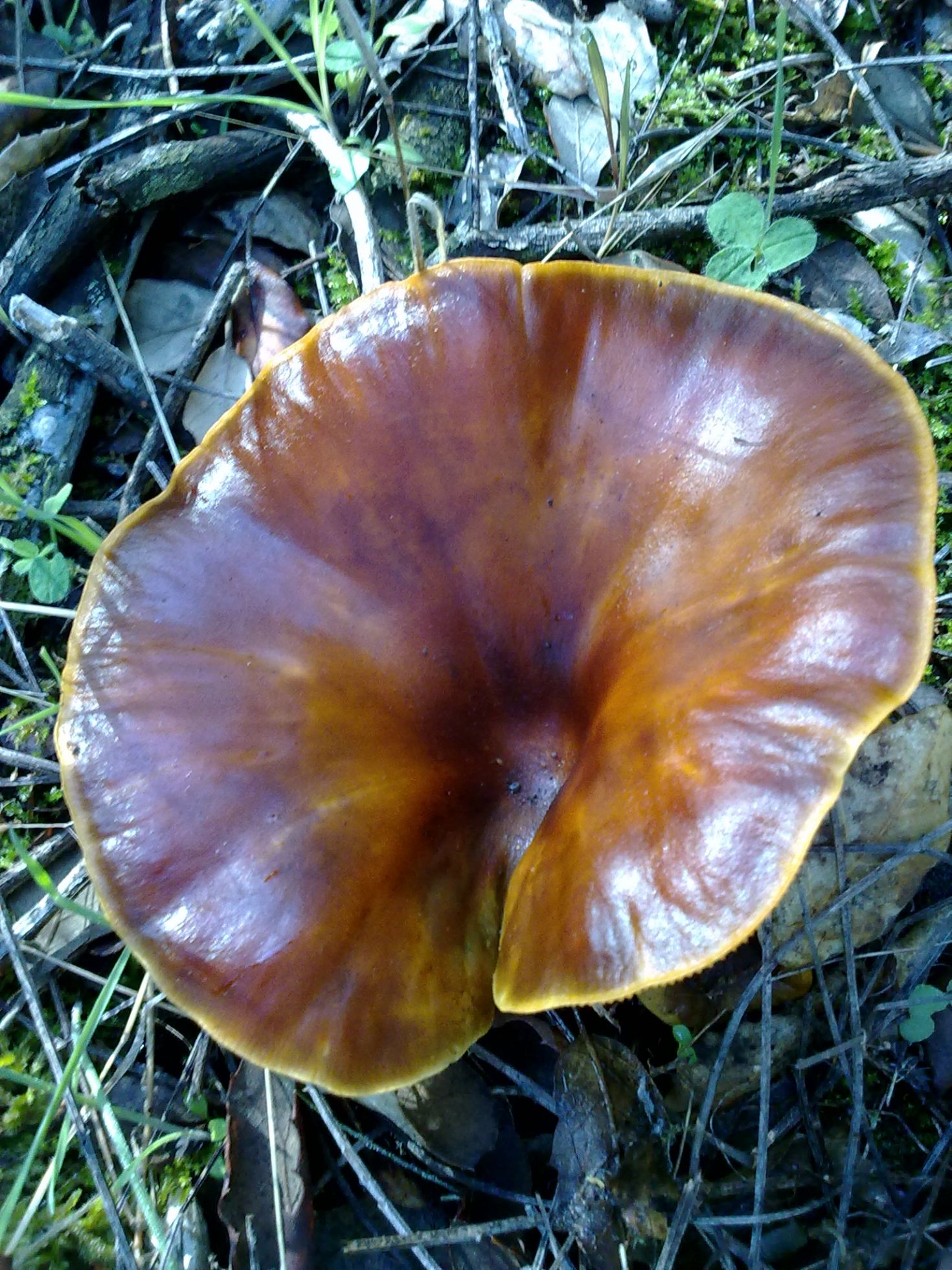 Creo que mi aterior propuesta (Omphalotus mexicanus) va muy bien encaminada, pero queda que nos confirmes su verdadero color.