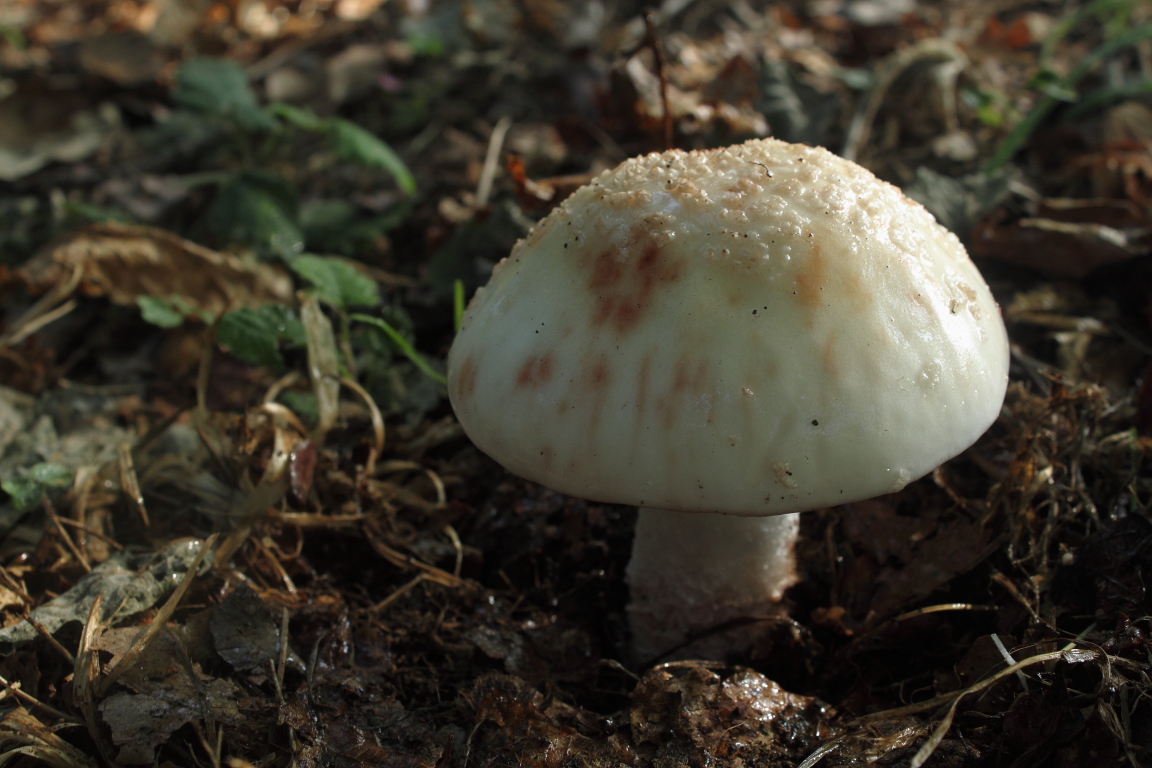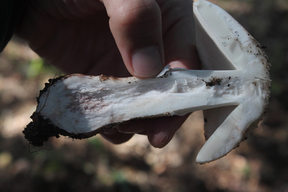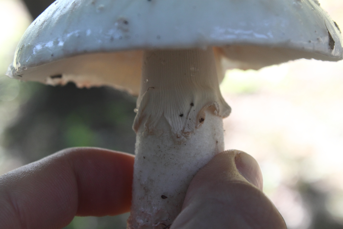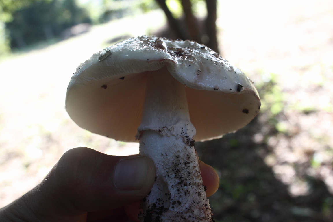 Tiene sentido ya que en la misma zona encontré Amanita rubescens, sin embargo me despista el hecho de que la carne no enrojeciera al tacto ni al corte. La variedad alba no enrojece? o tarda mucho en enrojecer?