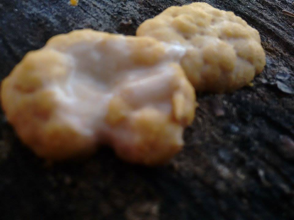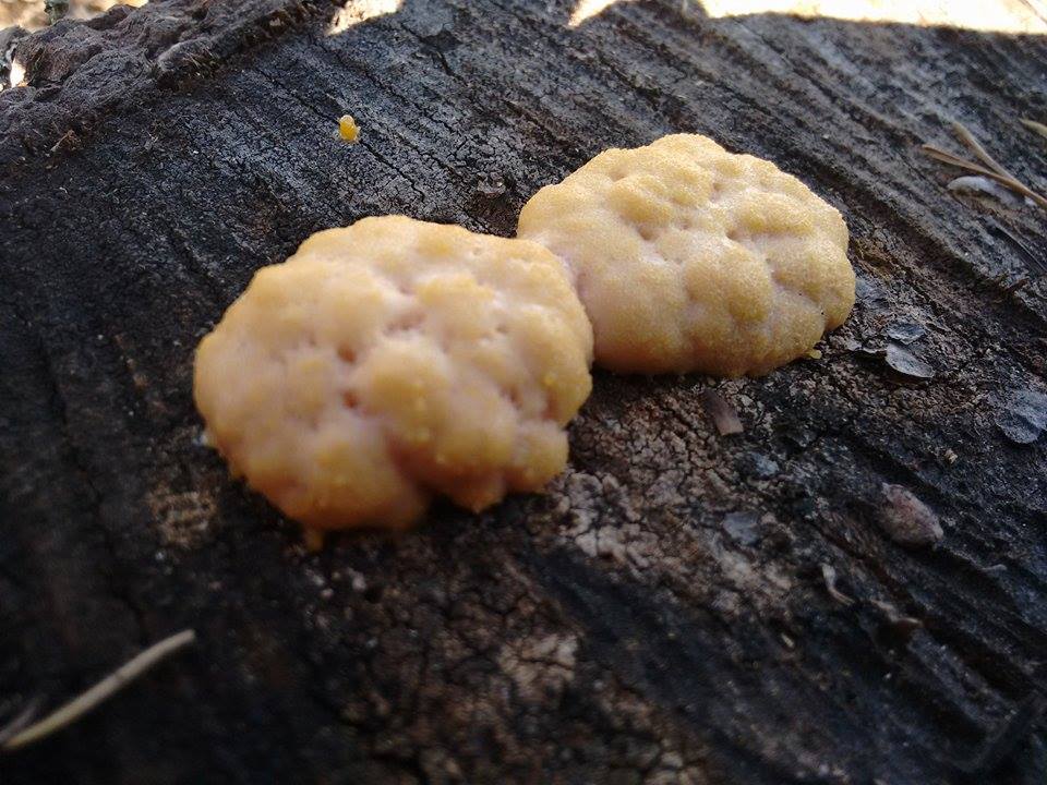 , en tocon de pino, masa viscosa, amarilla palida, por dentro semiliquida, ¿puede ser un tipo de fuligo?.