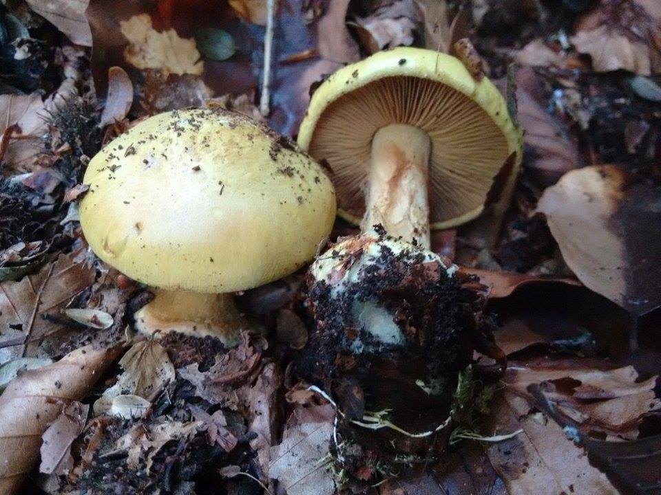 6- Un cortinario, en hayedo, en esa zona era una autentica plaga, color amarillo verdoso, de lejos pensé en un primer momento que era phalloides, sin olor destacable.