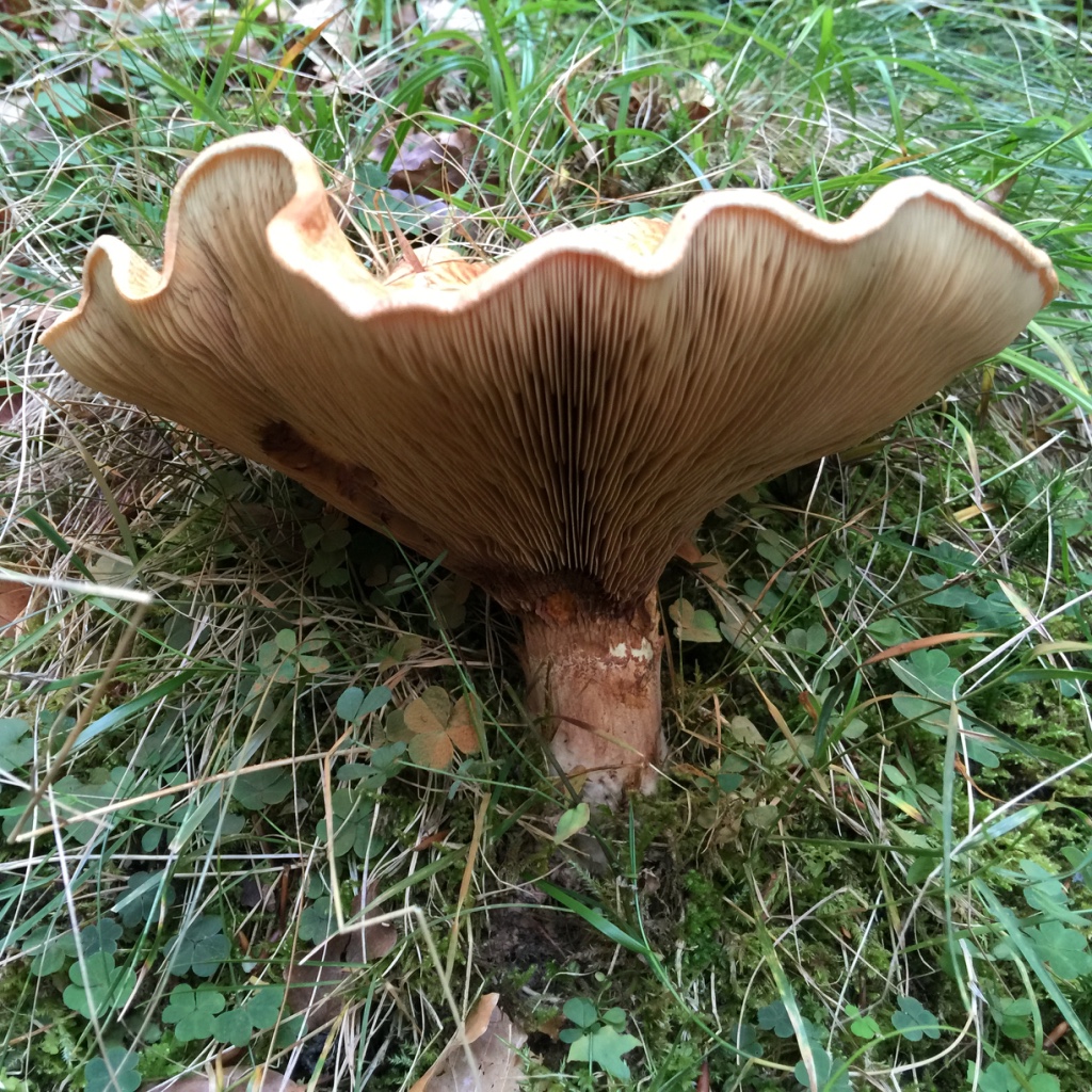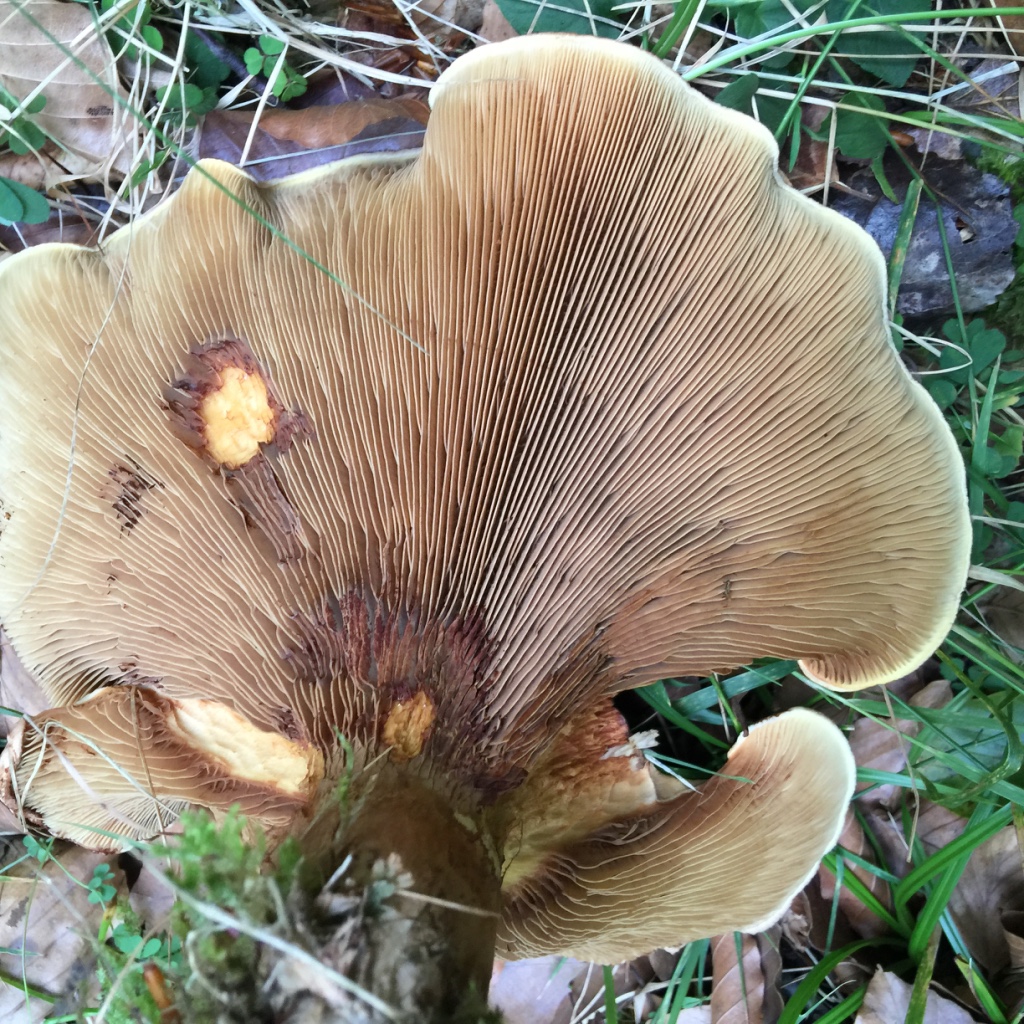 Hola Juan Antonio, extraña especie la primera que nos presentas. Puede que la primera de tus setas se trate del Leucopaxillus giganteus pero con dudas, la segunda creo debe ser algun Tricholoma, pero para algunas de este género puede que necesitases confirmación con la microscopía.