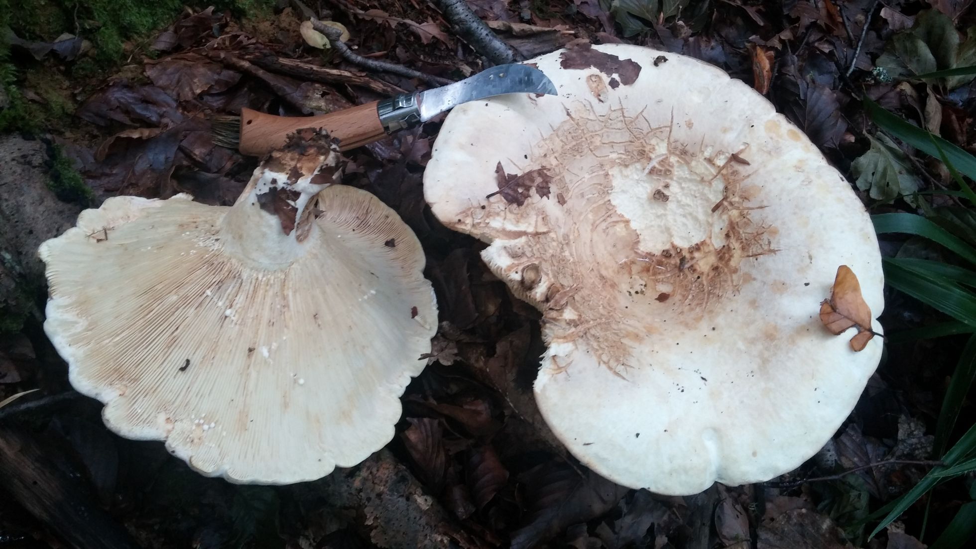5. Lactarius descomunal, tengo ganas de identificarlo porque lo he visto en multitud de ocasiones, a ojo diría que puede superar los 30 cm y creo que luego crece cerrando la copa, mostrando las láminas hacia afuera.