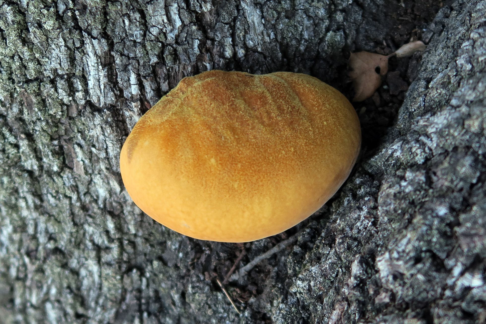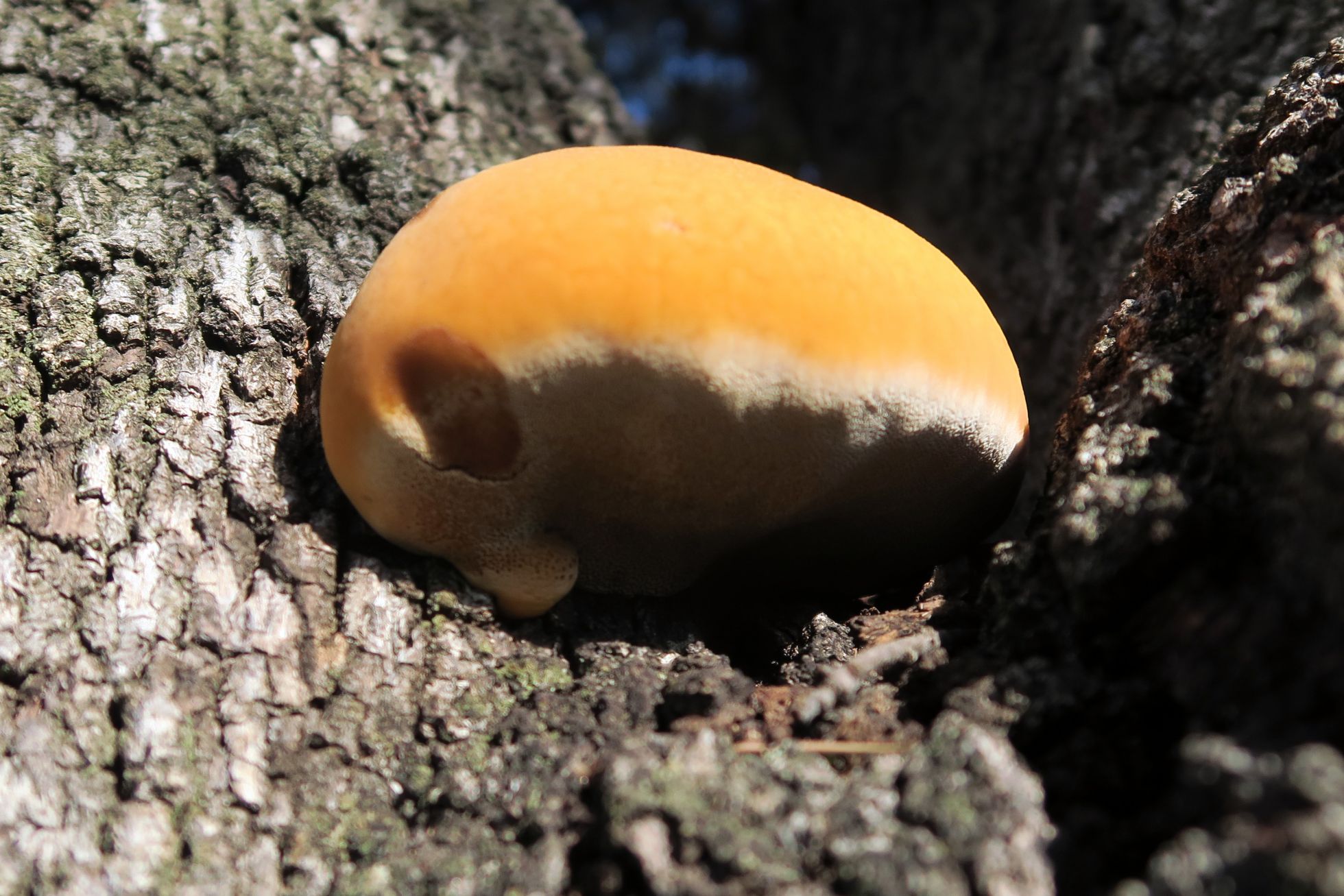Por el aspecto, creo que puede tratarse de un primordio de Inonotus hispidus. Suelen salir a la altura que mencionas.