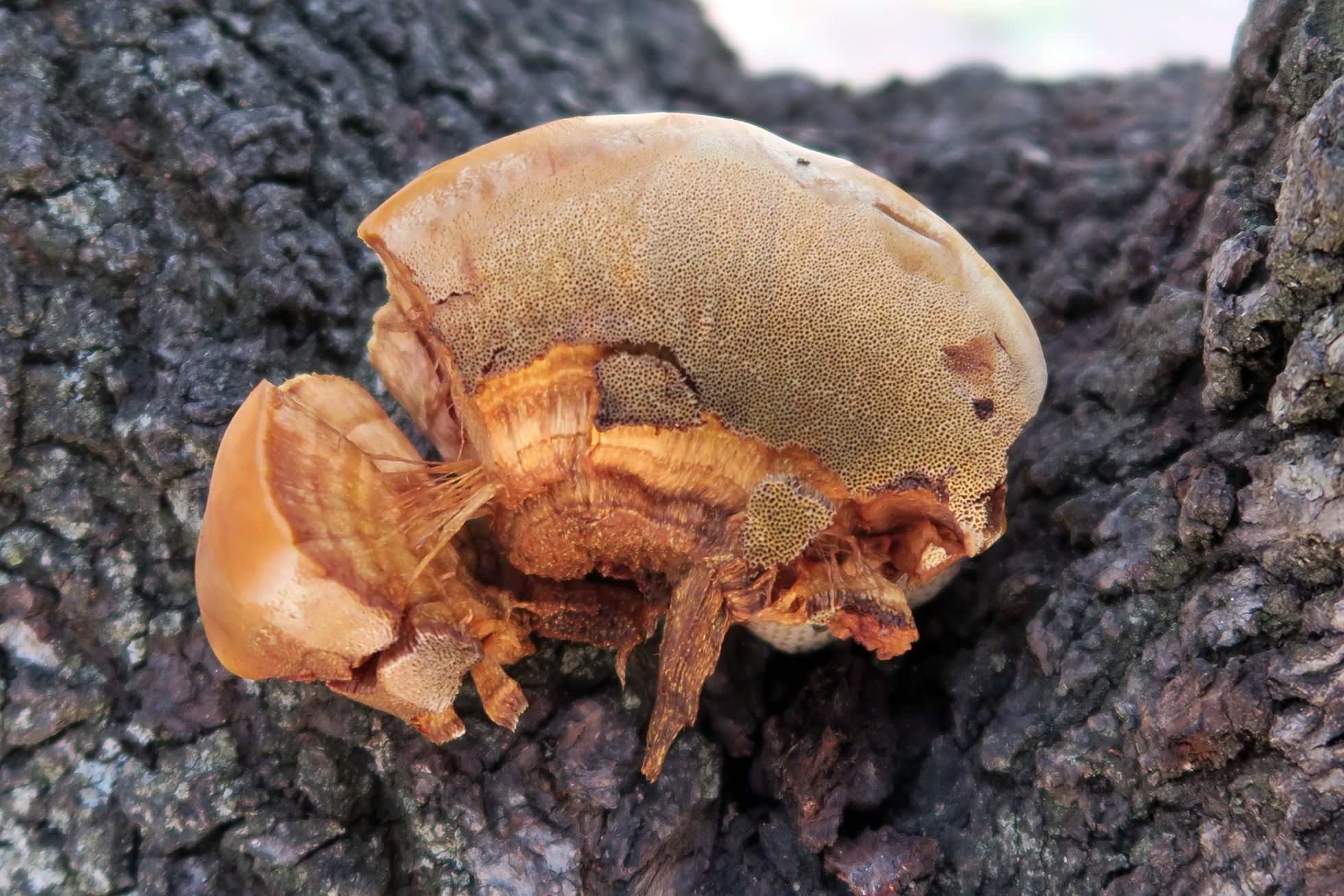 Bueno ahora me pongo serio, y para empezar nos lo pones bien difícil, sobre todo porque tu especie me parece un primordio, quizas de Perenniporia fraxinea o incluso de algun Phellinus o puede que la que tu propones, eso sí...no tenía ni idea de tal especie, de todas formas los "yesqueros" como yo los llamo, no son mi fuerte, sobre todo por que por aquí gozamos de demasiado buen tiempo, enemigo número uno de la gran mayoría de estas y otras setas, en el caso de que se traten de parásitas, lo agradecen los árboles gozando de mejor salud.