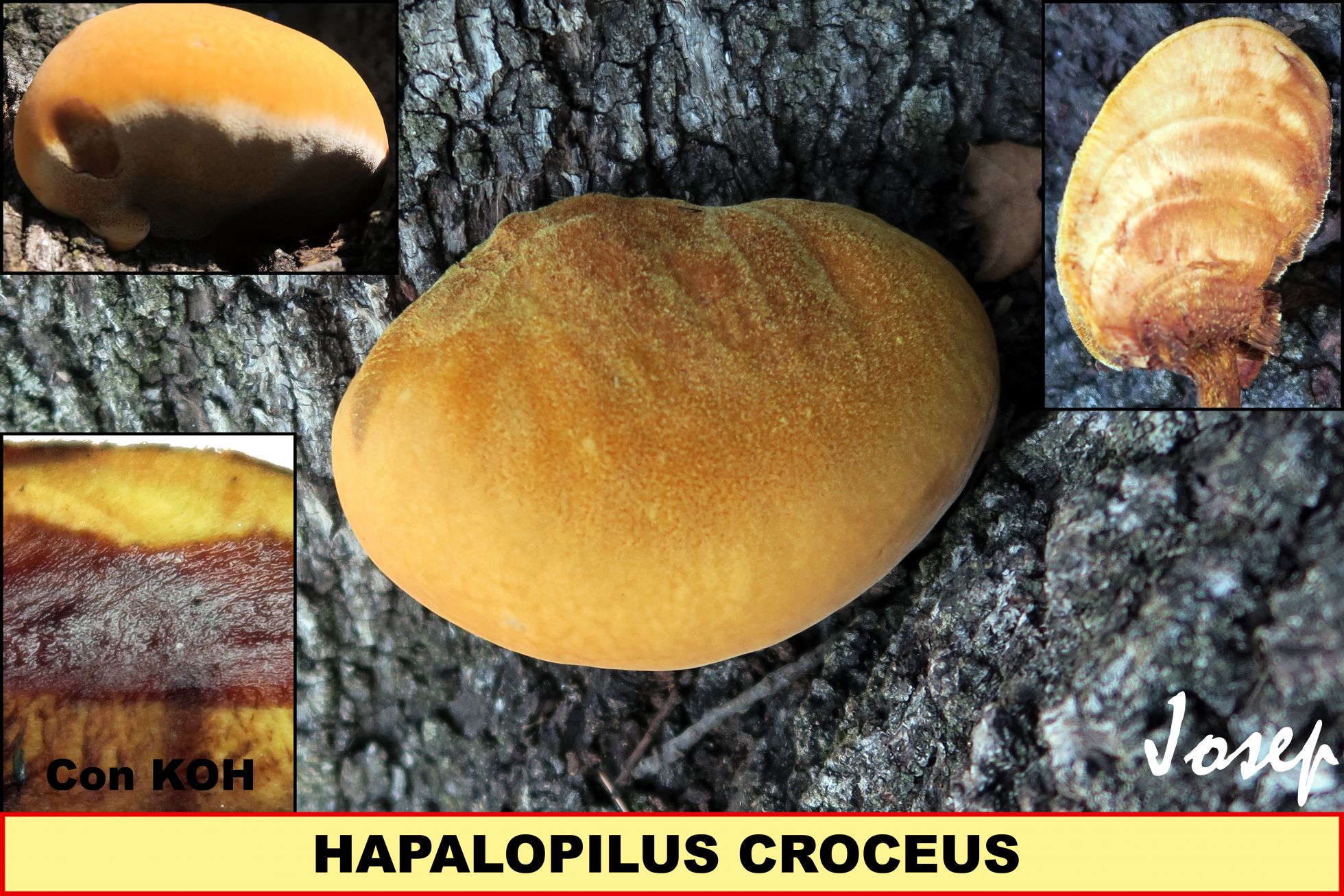 Llevo más de una hora recogiendo información sobre Hapalopilus Croceus y de Inonotus Hispidus y no hay ninguna referencia de reacción alguna de Inonotus Hispidus con KOH, los demás detalles van cuadrando con Hapalopilus Croceus, así que creo que el Bingo de Javier es correcto.