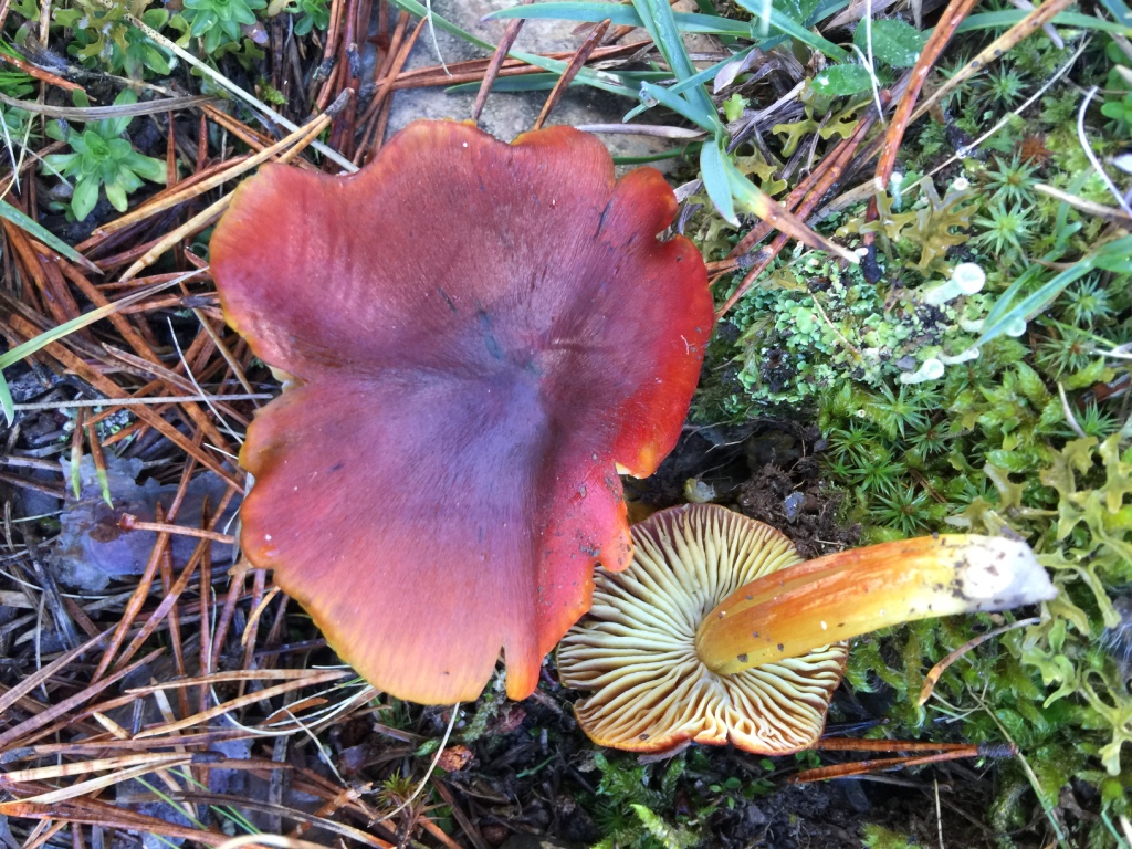 Esta parece un tricholoma y estaba a 1600 metros en un pinar de Pinus Silvestres.