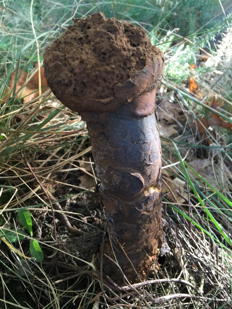la segunda que muestras es un Pedo de Lobo (Lycoperdon perlatum, o Lycoperdon utriforme), yo también encontré varios, pero no se comen, ya que no tienen carne, y si lo apretas veras porque recibe el nombre de pedo de lobo ... Dentro solo tiene las esporas marrones, y al apretarlo estalla soltando una nube de esporas; es más el que muestras juraría que ya ha "estallado", porque se ve el monton de esporas en la parte superior ...