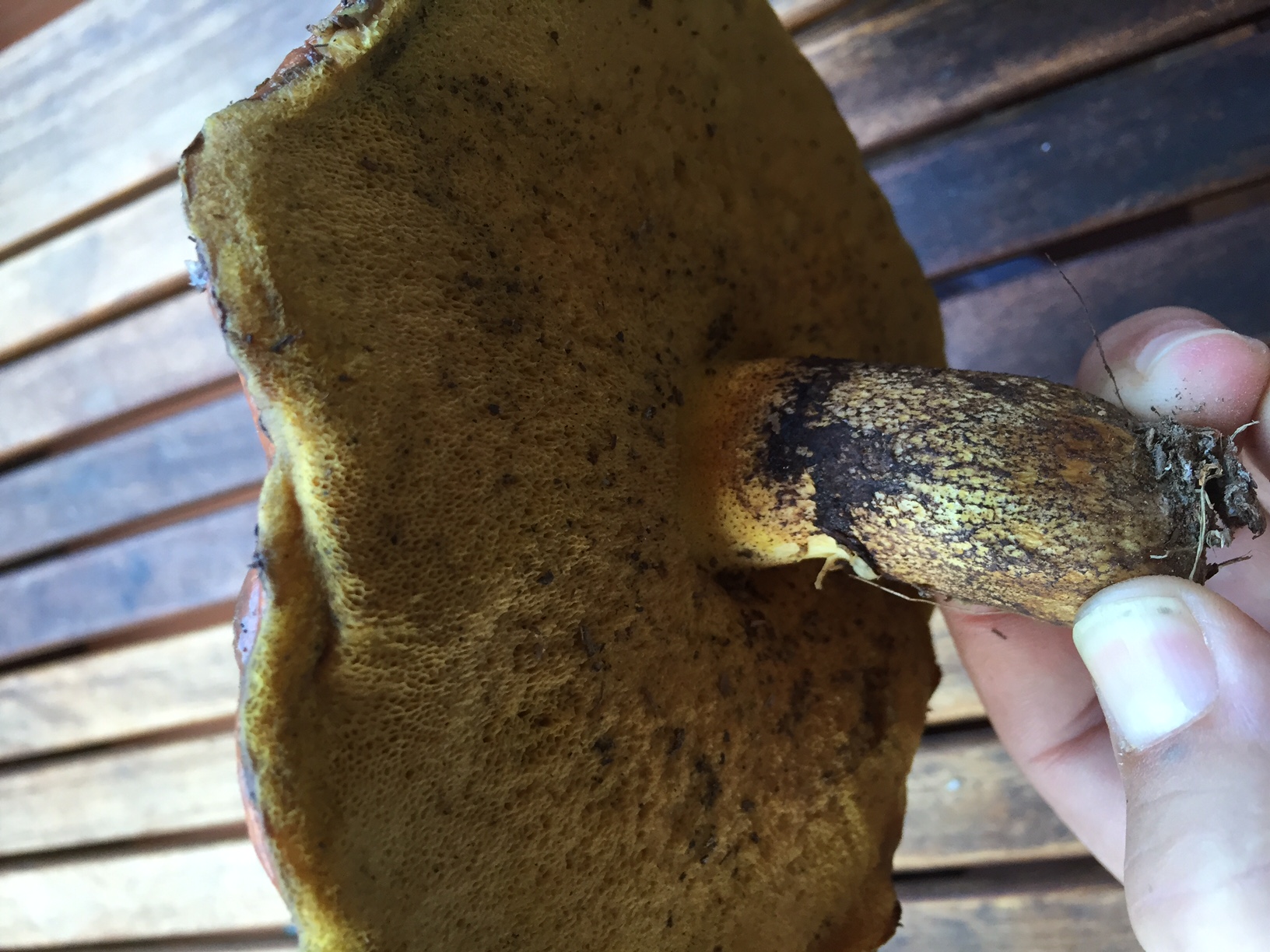 El primer ejemplar, ¿que puede ser?. Siempre los descarto y en la zona donde salgo hay muchísimos, 1500 metros, bosque de coníferas....Buscando en Fungipedia y desde mi ignorancia, diría que puede ser un boletus appendiculatus, pero no termina de cuadrarme...