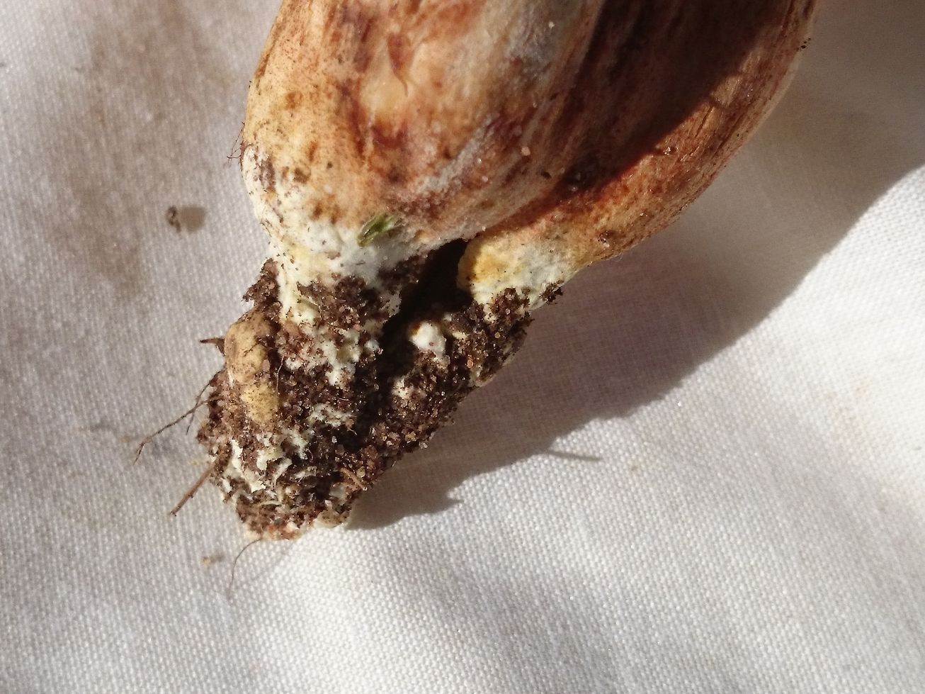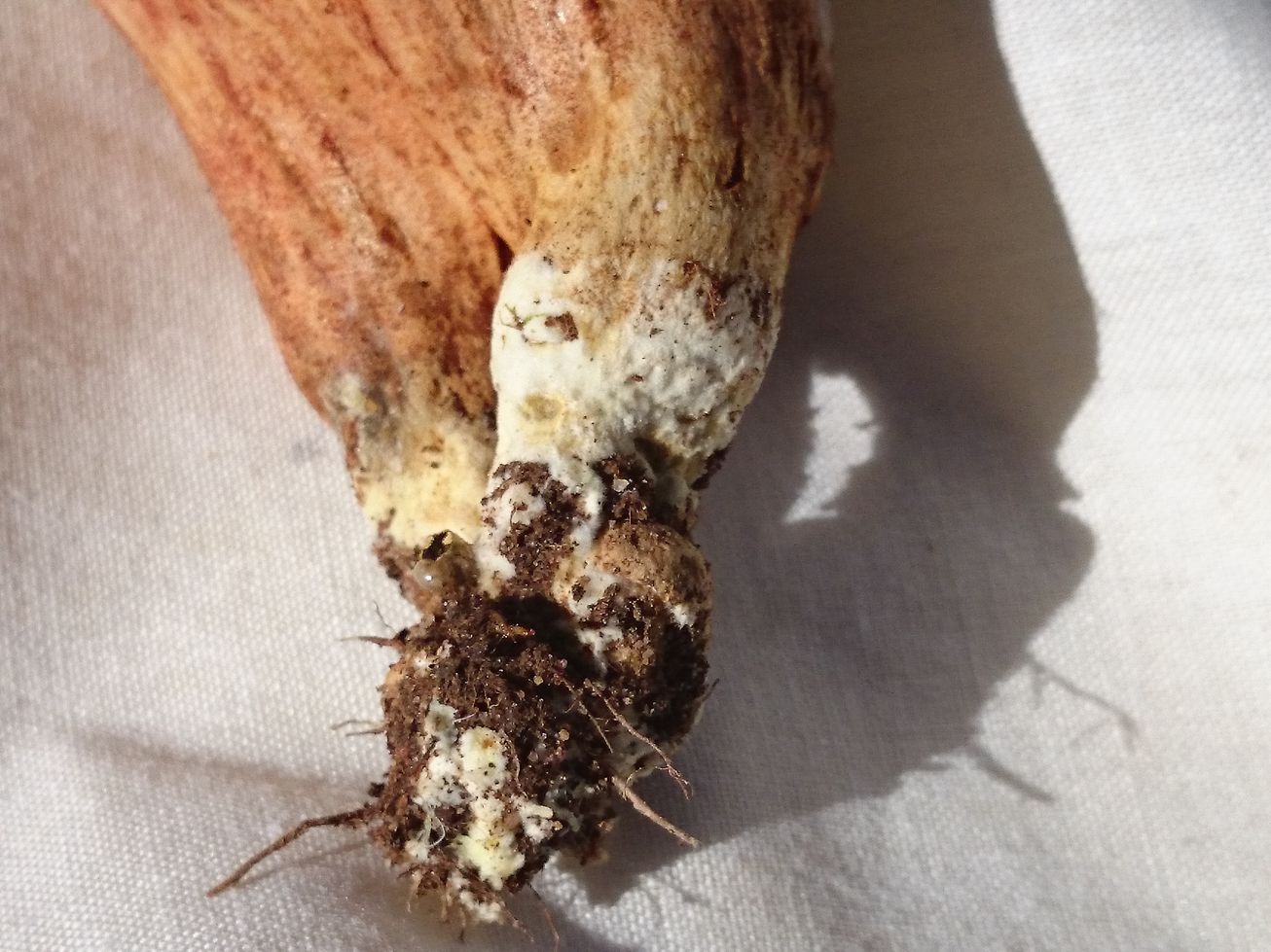 Recordemos que Xerocomus ferrugineus puede azulear o no al corte y que se diferencia de Xerocomus subtomentosus por el color de la carne (blanca en el primero, amarilla en el segundo) y por presentar restos miceliales de color amarillo. Haría falta ver la seta entera...