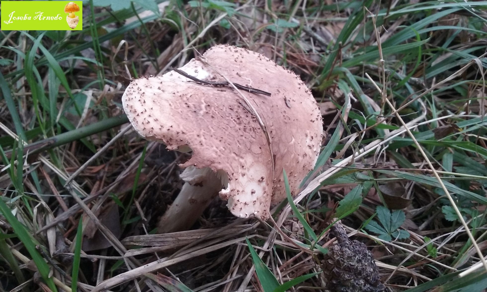 Esta Lepiota se encontraba en mitad de una pista. Tiene unas escamas en los bordes similares a las de la Lepiota aspera pero mas pequeñas, puede que se trate de esta especie? no lo tengo nada claro