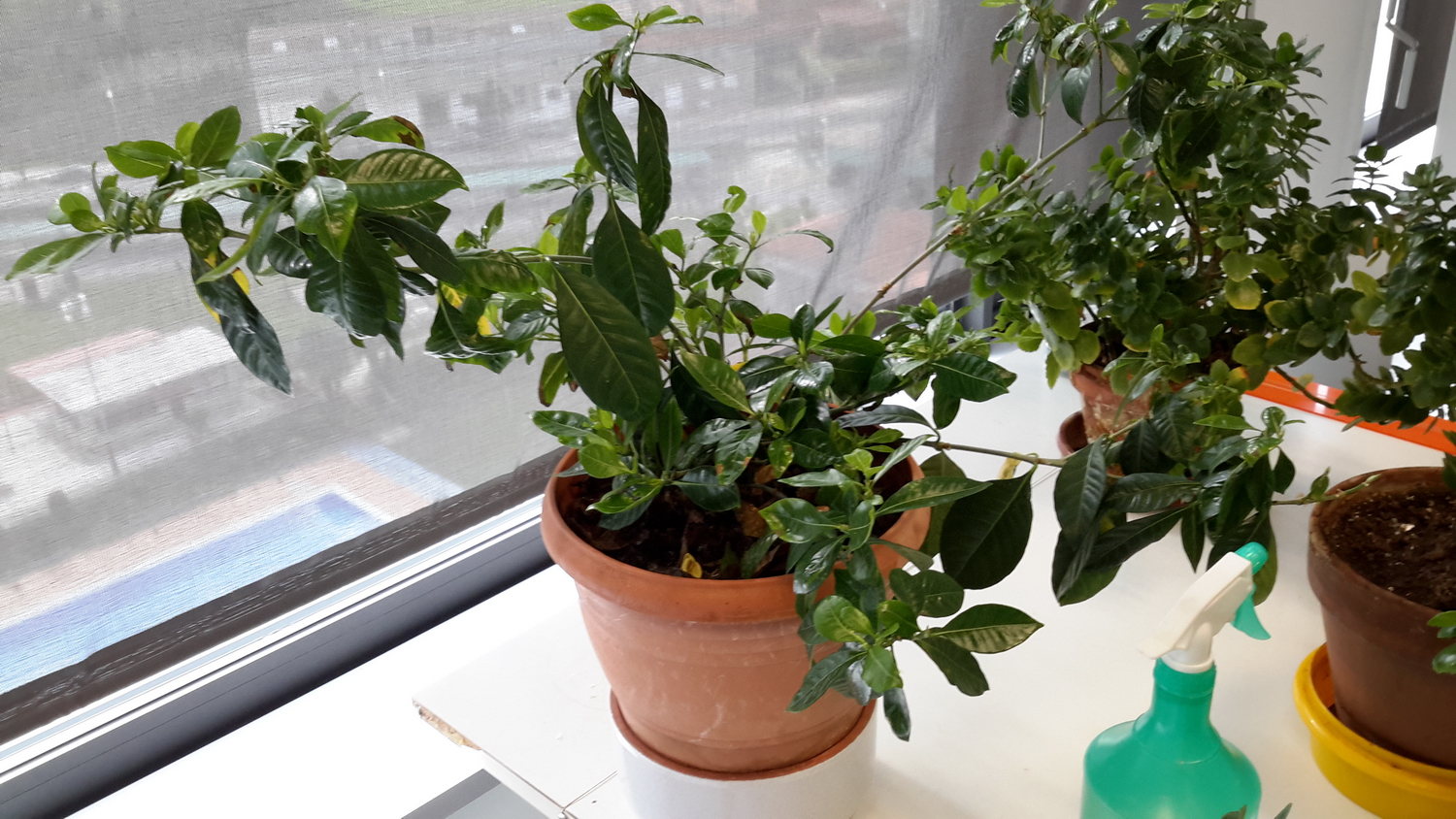 Pues eso, llego al trabajo y miro la Gardenia que tengo en un tiesto al borde de la ventana: