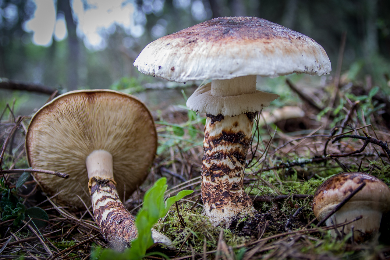 El sombrero de la primera era de unos diez centímetros, más o menos, por eso la Lepiota brunneoincarnata, está descartada, a mi me parece más Hebeloma radicosum, pero no estoy seguro de si tenían la raiz grande...