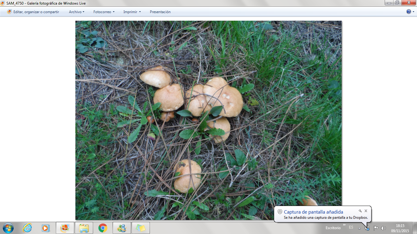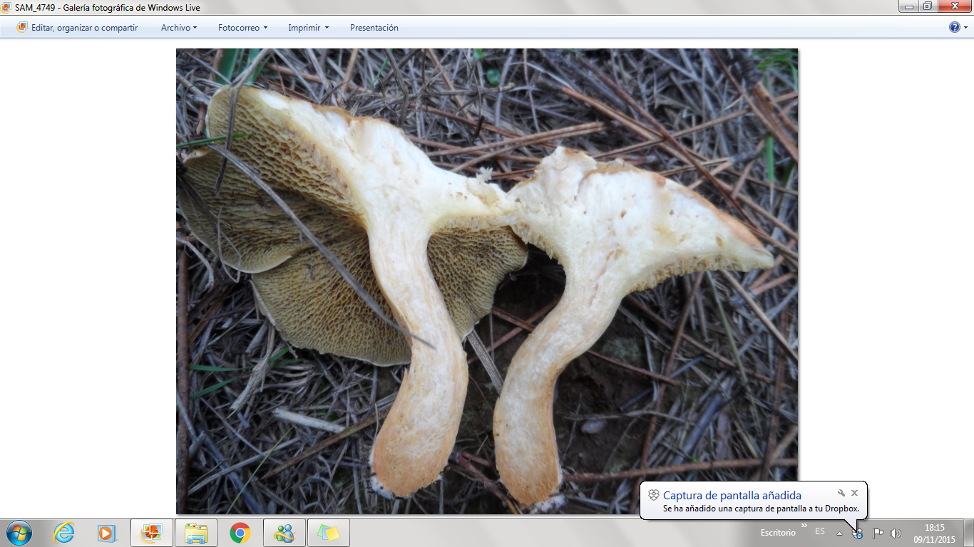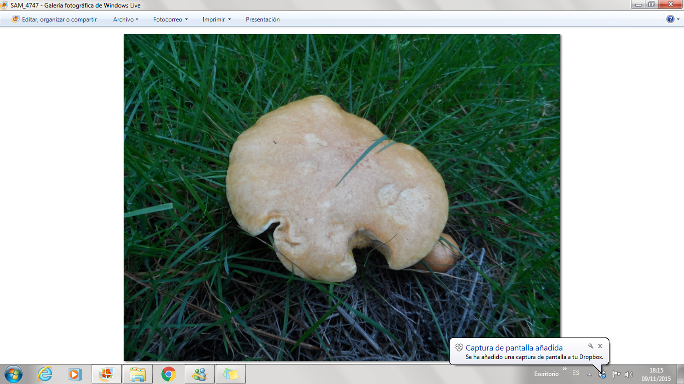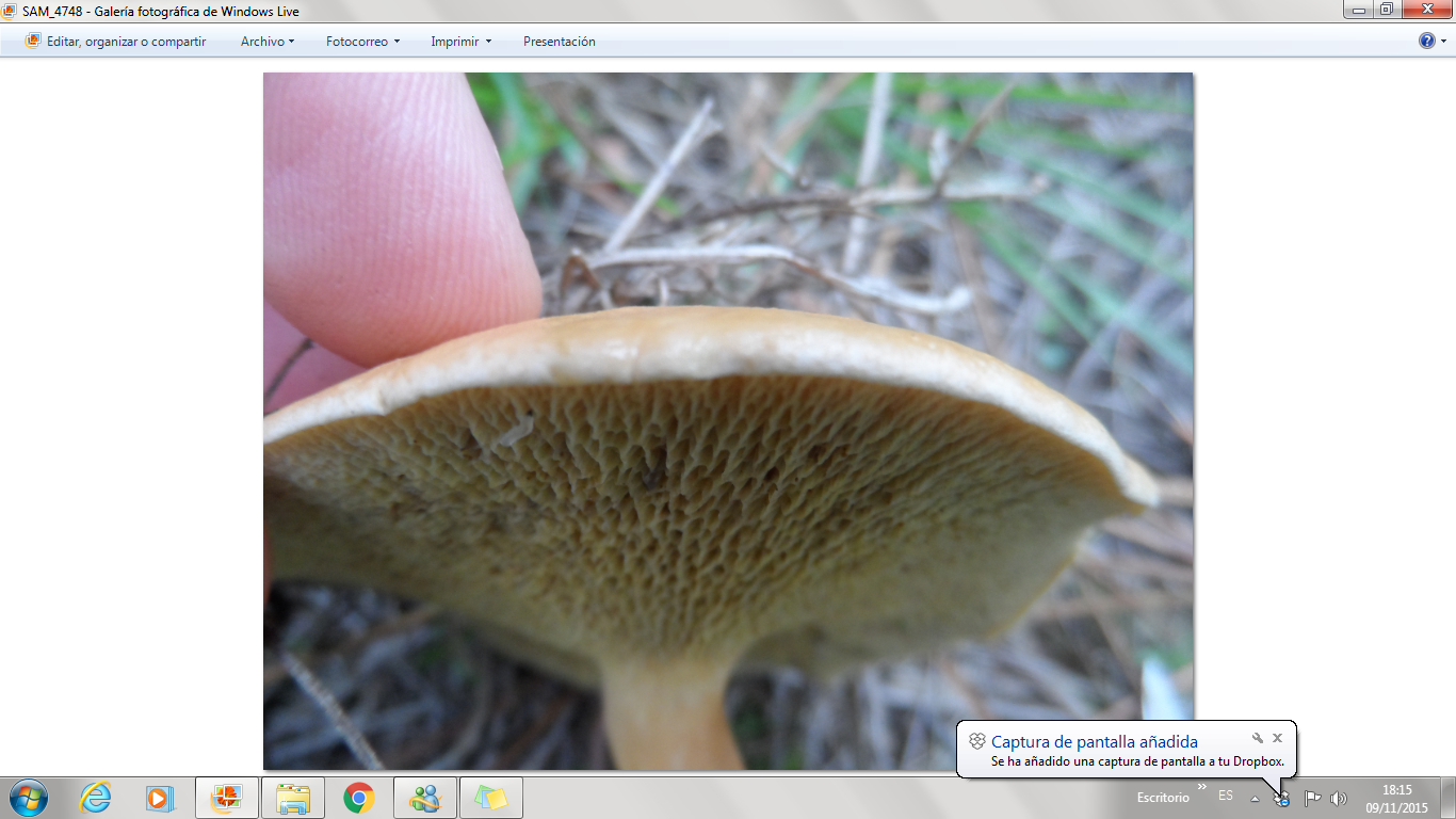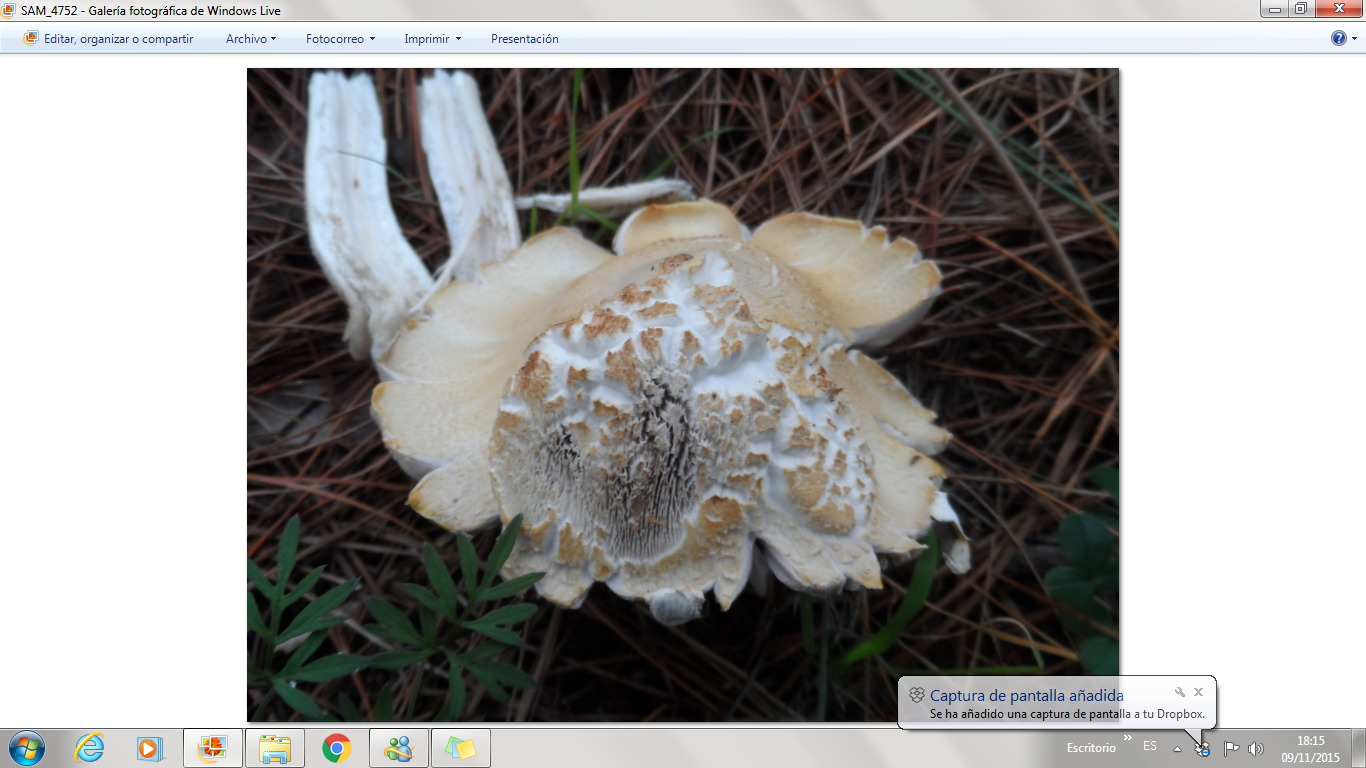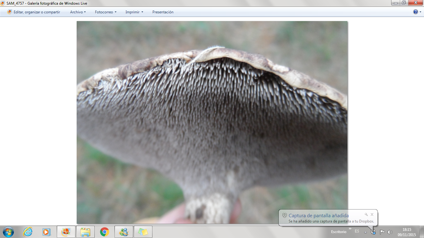 Las tres siguientes fotos creo que corresponden a un Agaricus sp, pero no me atrevo a comer sin identificarla . Característico olor anís y ya veis las fotos, láminas oscuras-rosadas, esa especie de escamas amarillas pero no amarillea el sombrero ni el pie al tacto