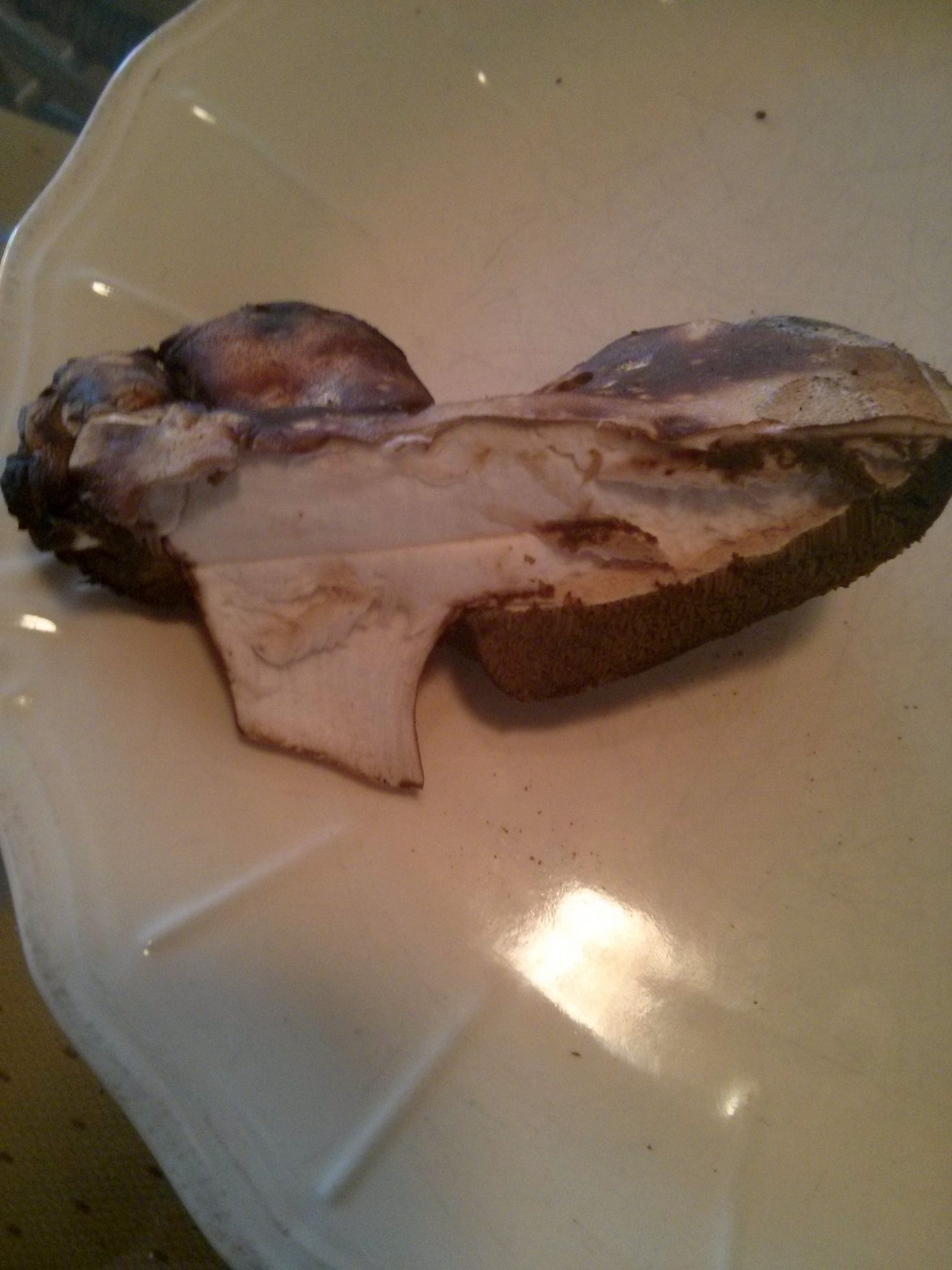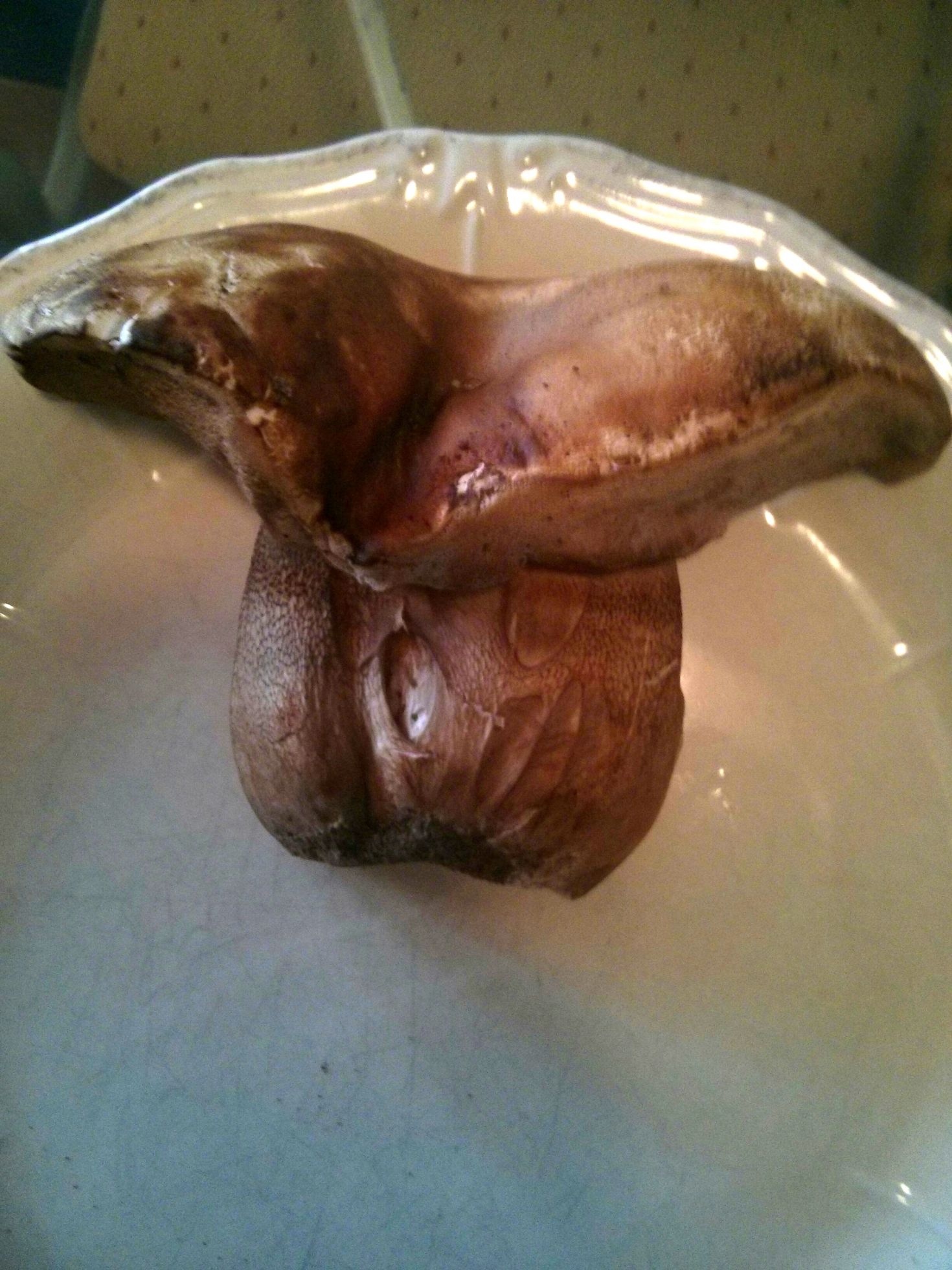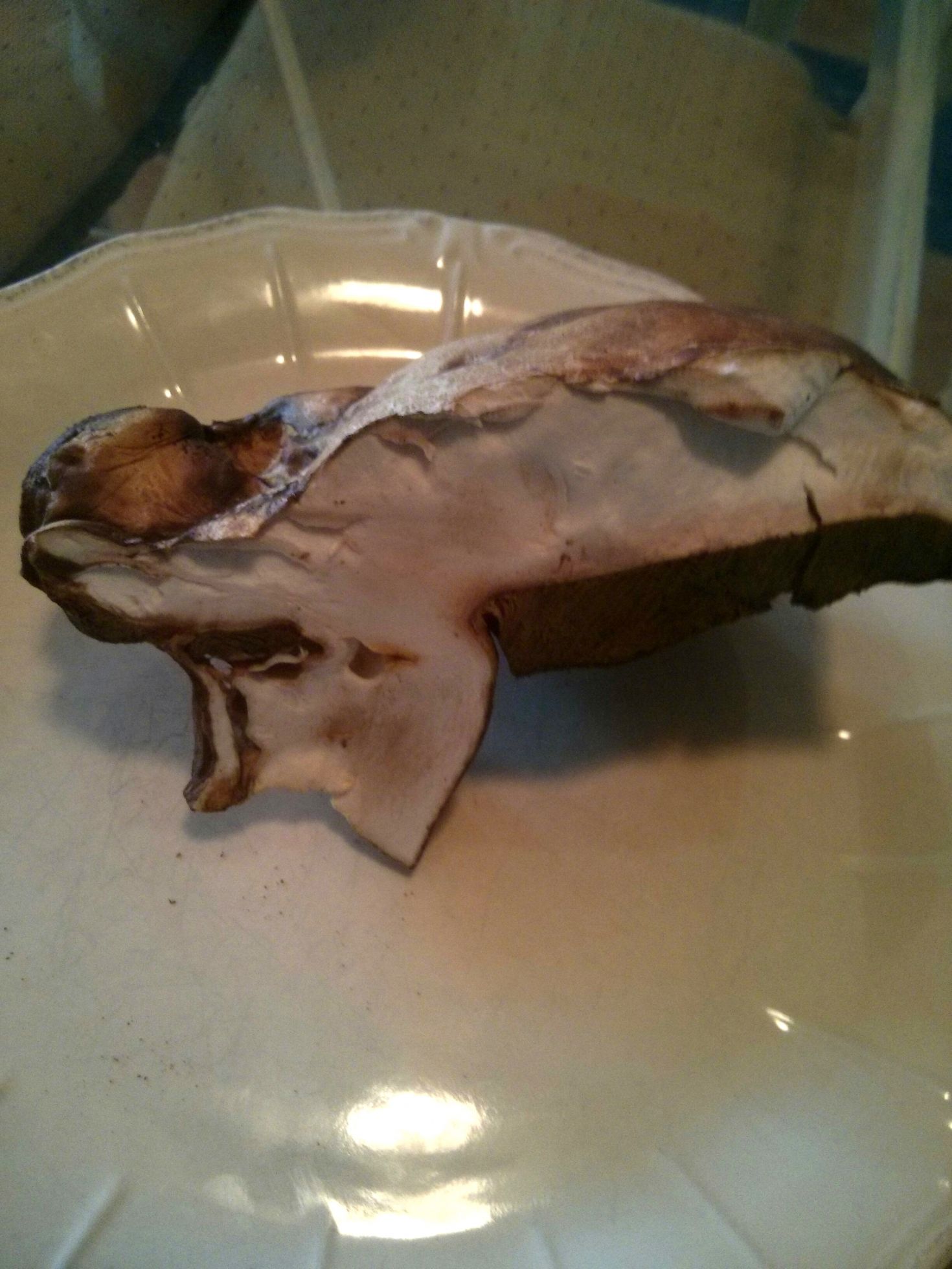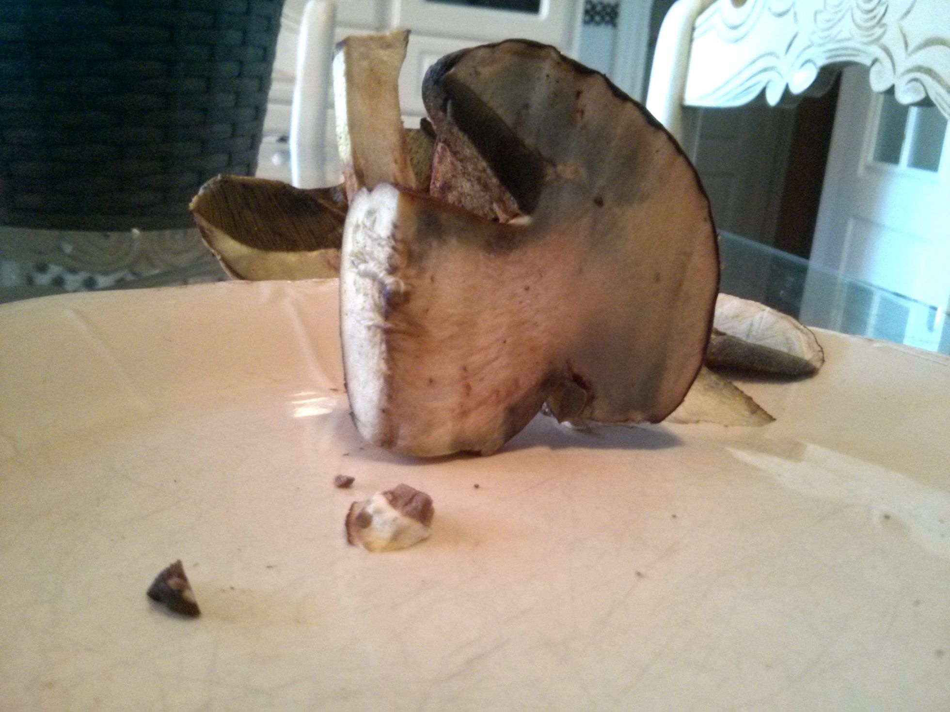 Este es muy blanco y marrón chocolate por fuera. Parece un boletus beningno y tenemos pocas dudas de que sea bueno, pero nos gustaría identificarlo.