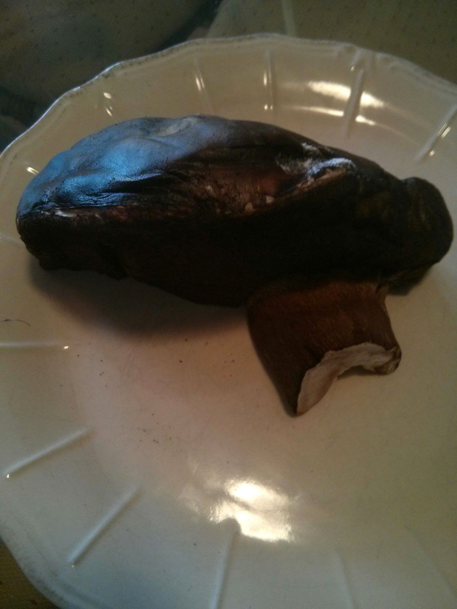 Por último, otro boletus más amarillento y que azulea al corte. Es muy oscuro por fuera y también tiene algún tono rojizo en el tallo.