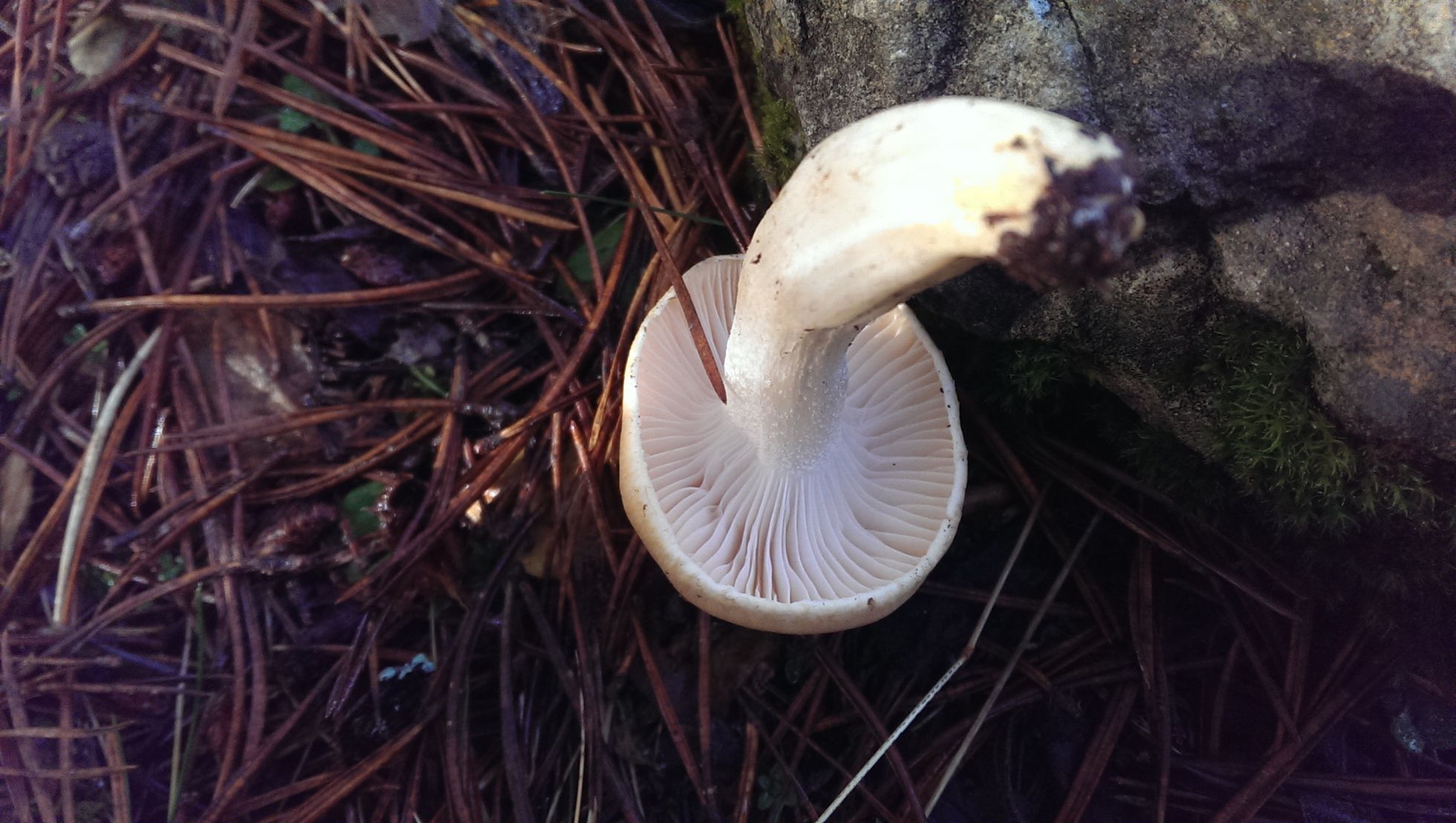Sombrero rosaceo y seco, para nada viscoso, el pie y las laminas mas claras que el sombrero, las laminas gruesas y separadas, un poco decurrentes me parecieron. Volvi a cometer el error de dejarla alli confiando en las malas fotos que le saque...